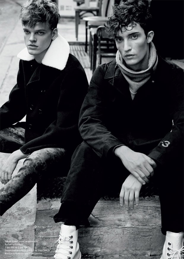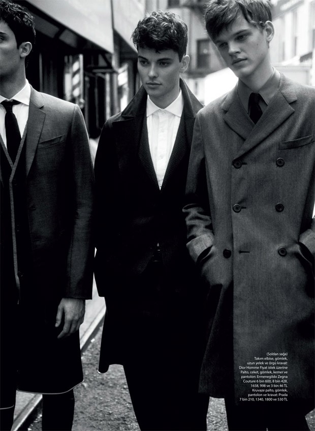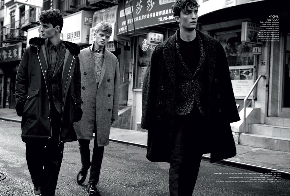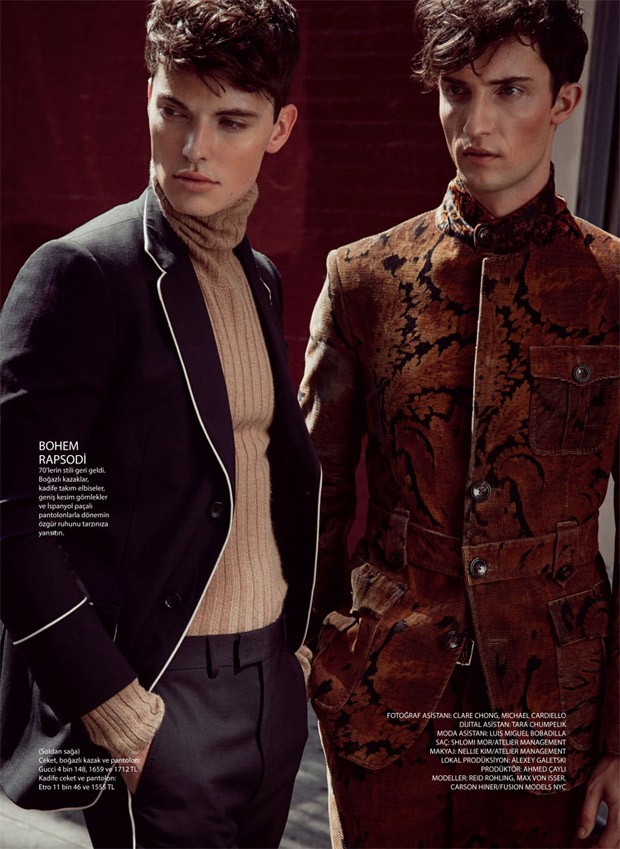 “Models Max Von Isser, Carson Hiner, and Reid Rohling (All at Fusion Models NYC) star in Sezona Bakis story captured by fashion photographer David Roemer at Atelier Management for GQ Turkey‘s latest edition. In charge of styling was Antonio Branco, with hair by Shlomi Mor at Atelier Management, and makeup by Nellie Kim at Atelier Management.” – Malemodelscene.net