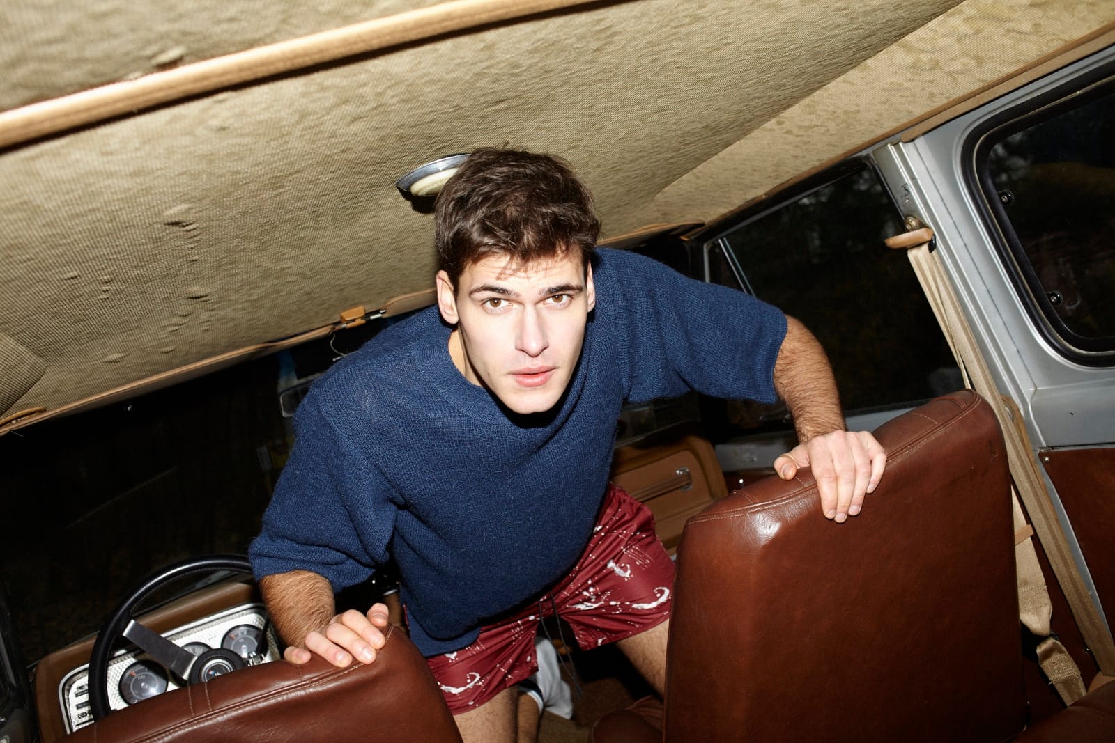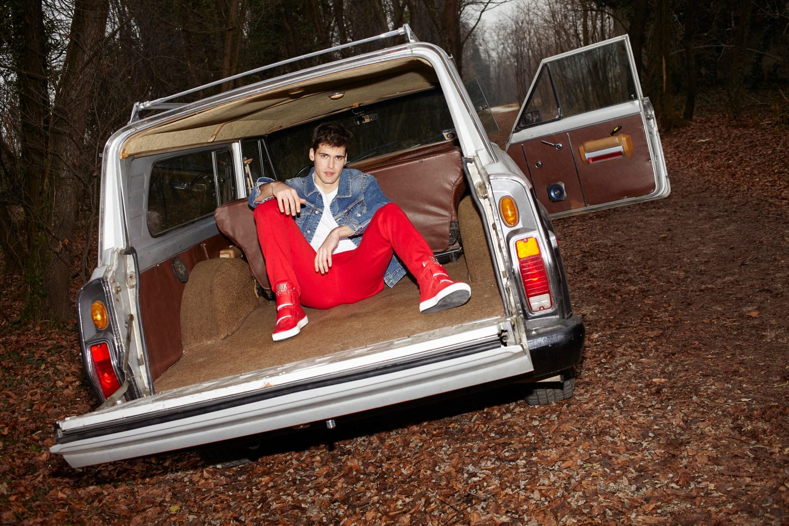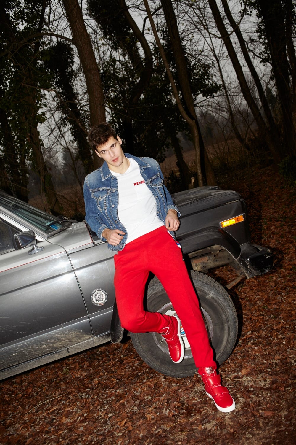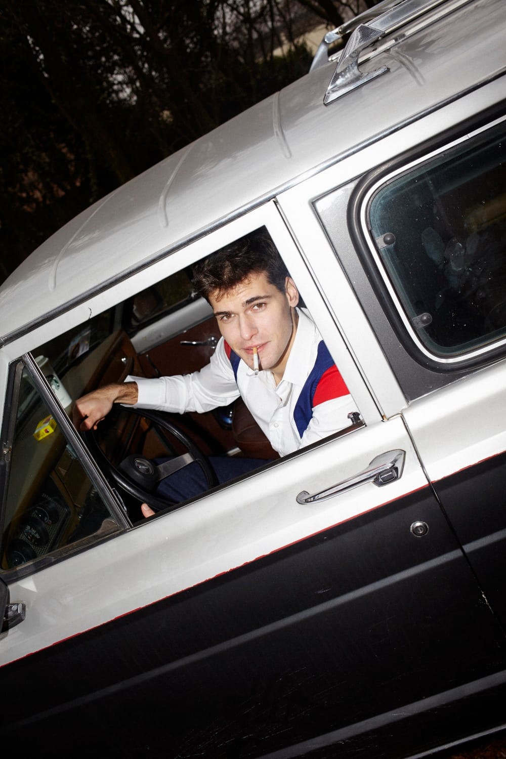“Belgian model Melvyn Conrad at D’Men is photographed by Simon in the story “Danse La Voiture” for TOH! magazine no. 28…