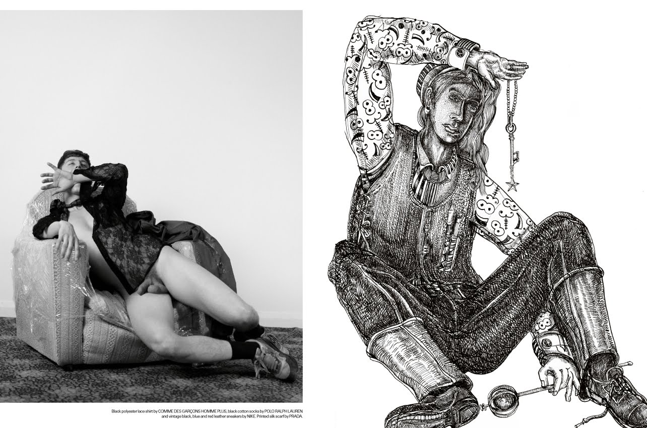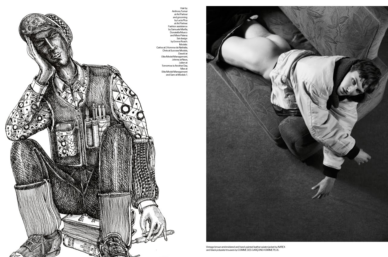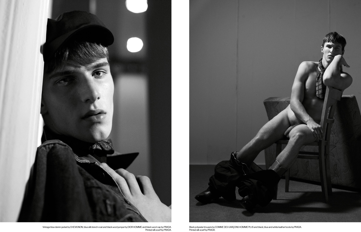 Long time collaborators Willy Vanderperre and Olivier Rizzo assemble Chris, Max, Dawid, Carlos, Sam, and Julien for this haunting shoot for Man About Town’s latest issue. Clad in high end clothes from Prada and Comme des Garcons, the models are captured in various states of undress. Courtesy of – hommemodel.blogspot.com‘