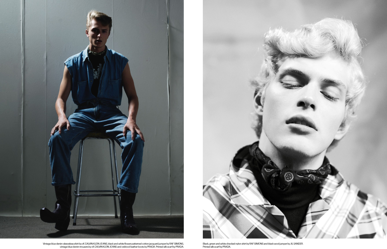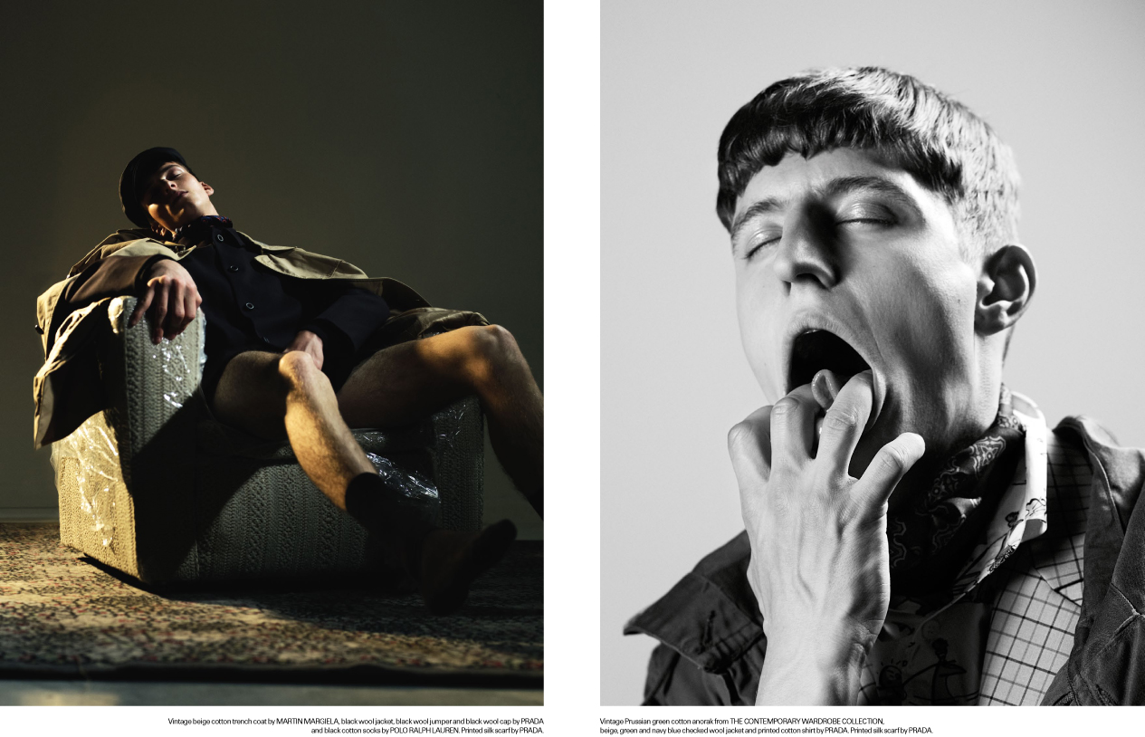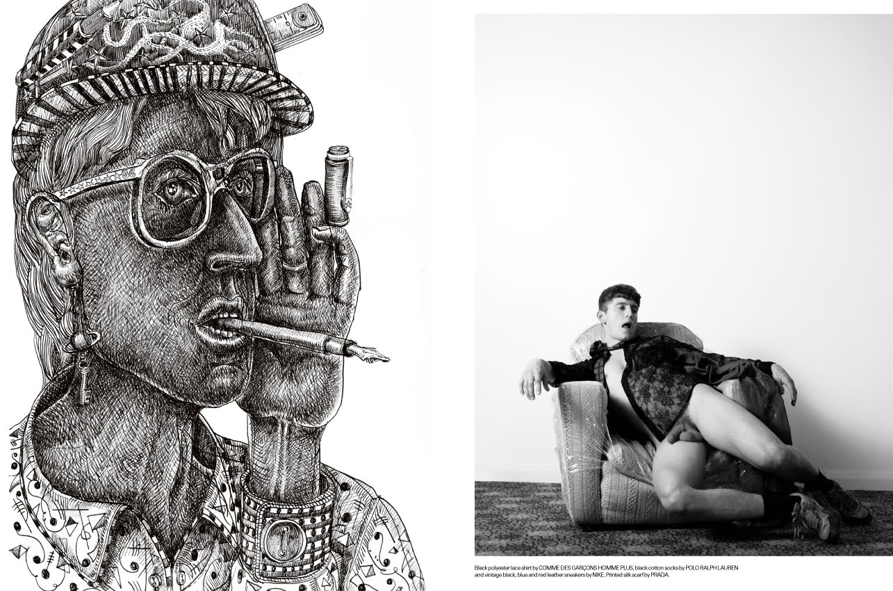 Long time collaborators Willy Vanderperre and Olivier Rizzo assemble Chris, Max, Dawid, Carlos, Sam, and Julien for this haunting shoot for Man About Town’s latest issue. Clad in high end clothes from Prada and Comme des Garcons, the models are captured in various states of undress. Courtesy of – hommemodel.blogspot.com‘