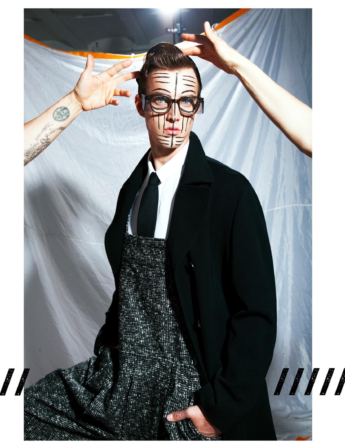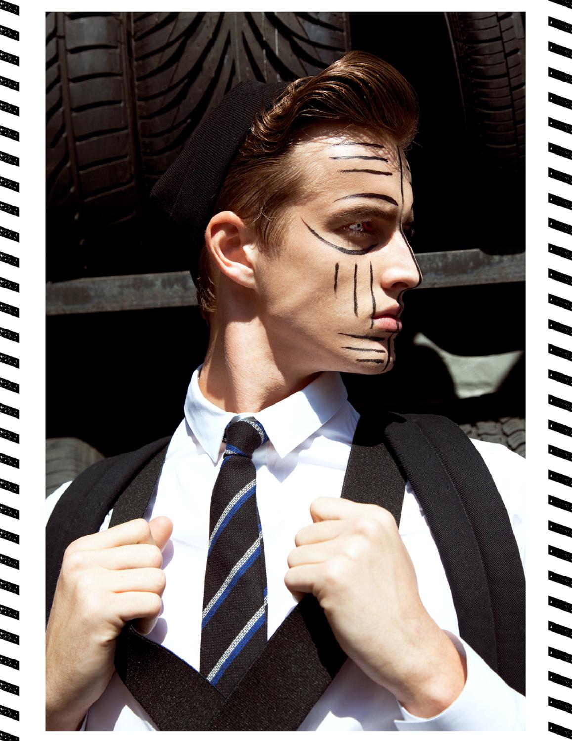 James Smith, Philip Bierbaum and Milo Spijkers are captured by Peter Staglmayr for the seventh issue of Visual Tales. The 21 page shoot features the fashion of Belgian designer Kris Van Assche, all styled by New York-based stylist David Vandewal. Animalistic makeup is juxtaposed with KVA’s luxurious fashions that takes blue collar workers clothing to the luxury level. Courtesy of – hommemodel.blogspot.com