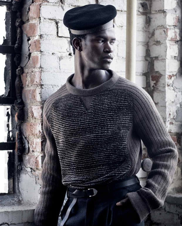 For the session Salomon is wearing pieces from Balenciaga, Berluti, Bottega Veneta, Coach, Dior, DSquared2, Ermenegildo Zegna, Etro, Falke, Hermès, JJ Hat Center, Louis Vuitton, Saint Laurent, Salvatore Ferragamo, Stella McCartney, Tom Ford, and Valentino.” – Malemodelscene.net