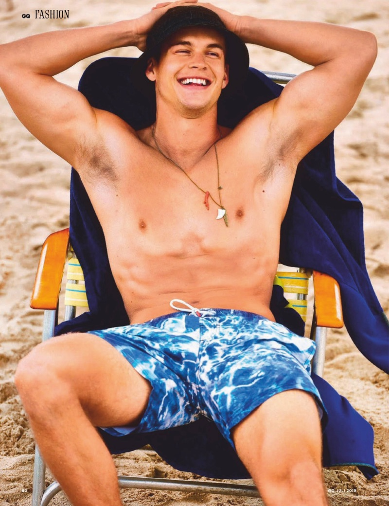 “Mitchell Slaggert touches down in Miami for fun in the sun. The American model stars in an editorial for the most recent issue of GQ Germany. Donning swimsuits and shades, Mitchell appears before the lens of photographer Philippe Vogelenzang. The beach outing comes together with styling by Tobias Frericks. Front and center, Mitchell sports swimwear from the likes of EA7 and Billionaire.” – TheFashionisto.com