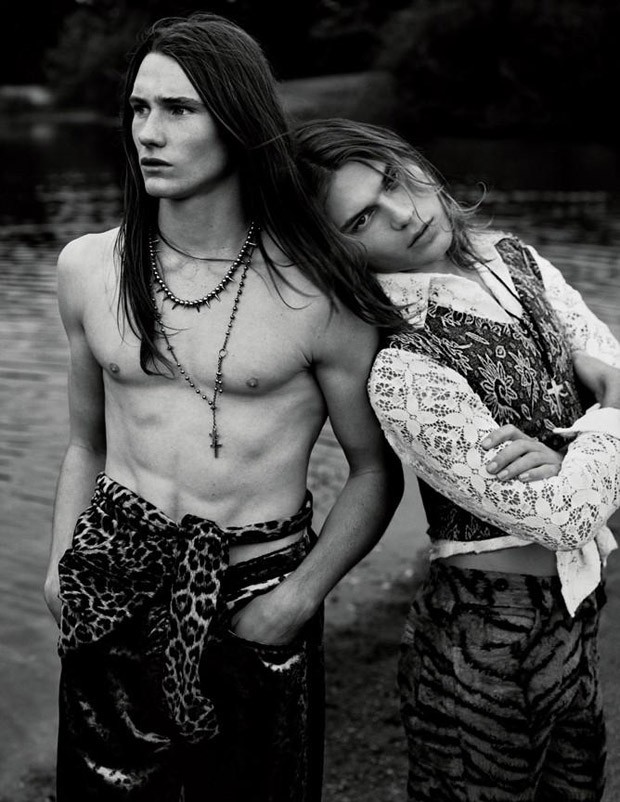“Up and coming models Michael Bailey Gates and Willis J star on the pages of Arena Homme Plus‘ latest edition captured by fashion photographer Alasdair McLellan. Styling is work of Benjamin Bruno, with makeup by Frankie Boyd, and hair styling by Syd Hayes. For By Alasdair story Michael and Willis were joined by top model Issa Lish.” – Malemodelscene.net