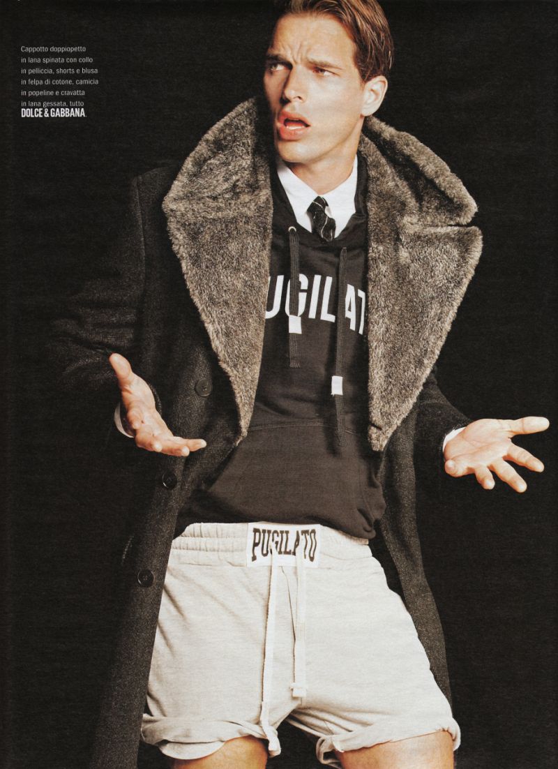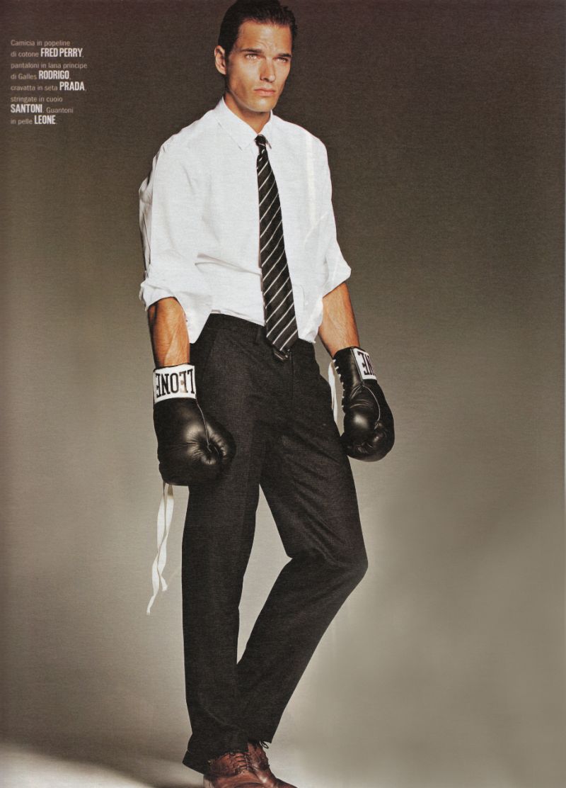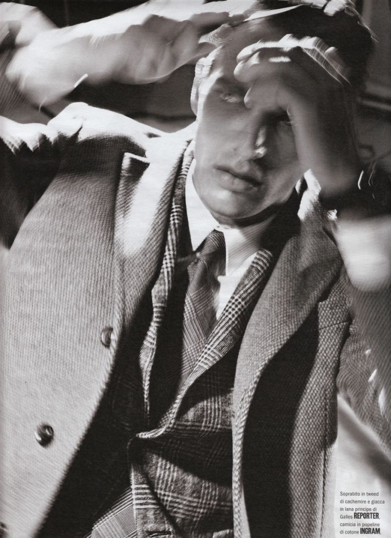 Milano ’60–Jacopo Moschin photographs Michael Gstoettner in tweeds and boxing gear for MAX magazine. In the September issue, the Next Company model appears as the quintessential italian man wearing pieces from Trussardi 1911, Prada, Corneliani and Dolce & Gabbana among other labels, styled by Carlo Ortenzi. Courtesy of – thefashionisto.com