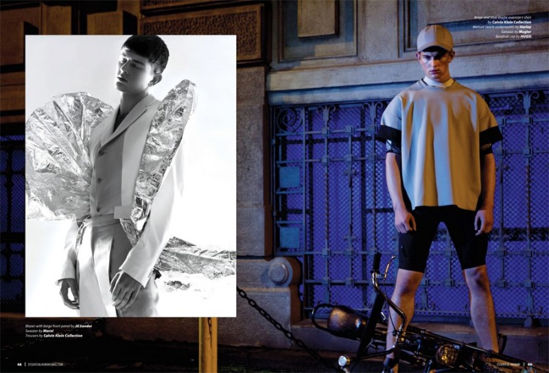 Sport Meets Fashion–The latest issue of Essential Homme features a story lensed by Ivan Muselli, starring 2Morrow model Michael Morgan. Focusing on how sportswear influenced many spring/summer 2013 collections, stylist Ivan Bontchev assembles a wardrobe that plays with the versatile appeal of fashionable sportswear, combining hi-tech fabrics and details with more refined garments and outerwear pieces. / Grooming by Cristina Bertaggia. Courtesy of – thefashionisto.com