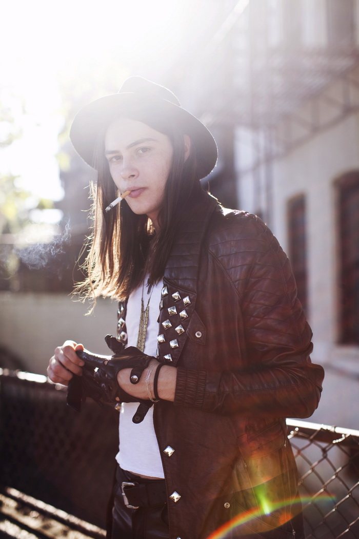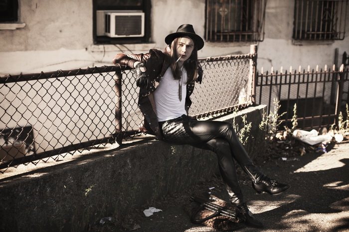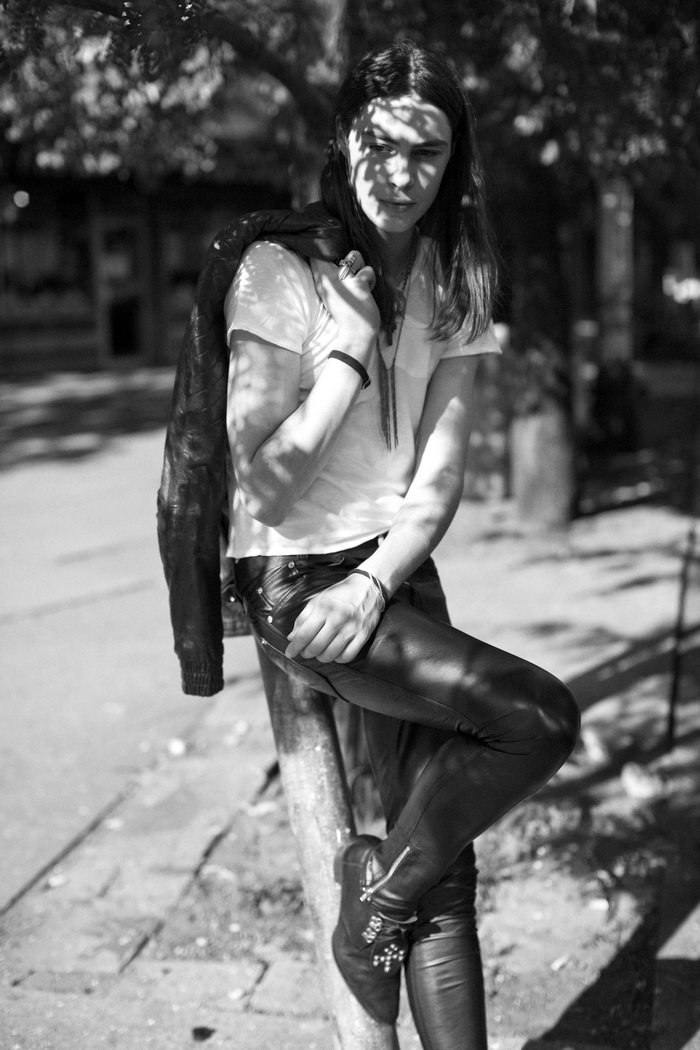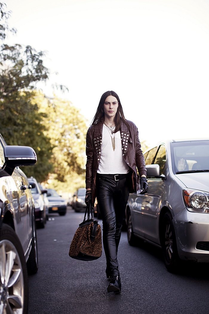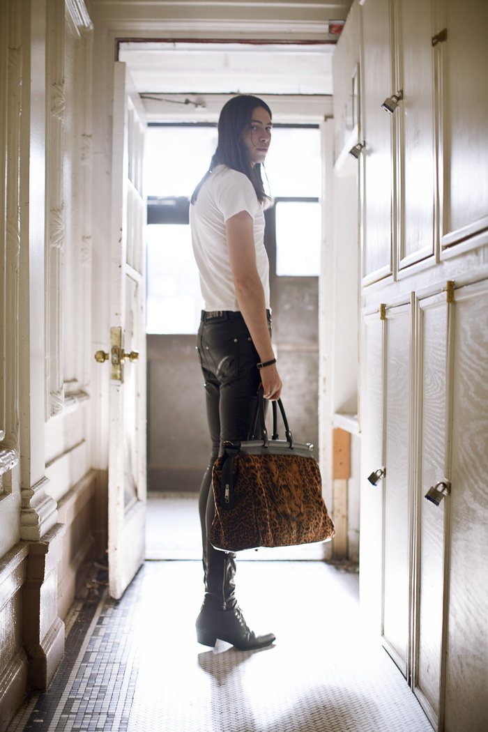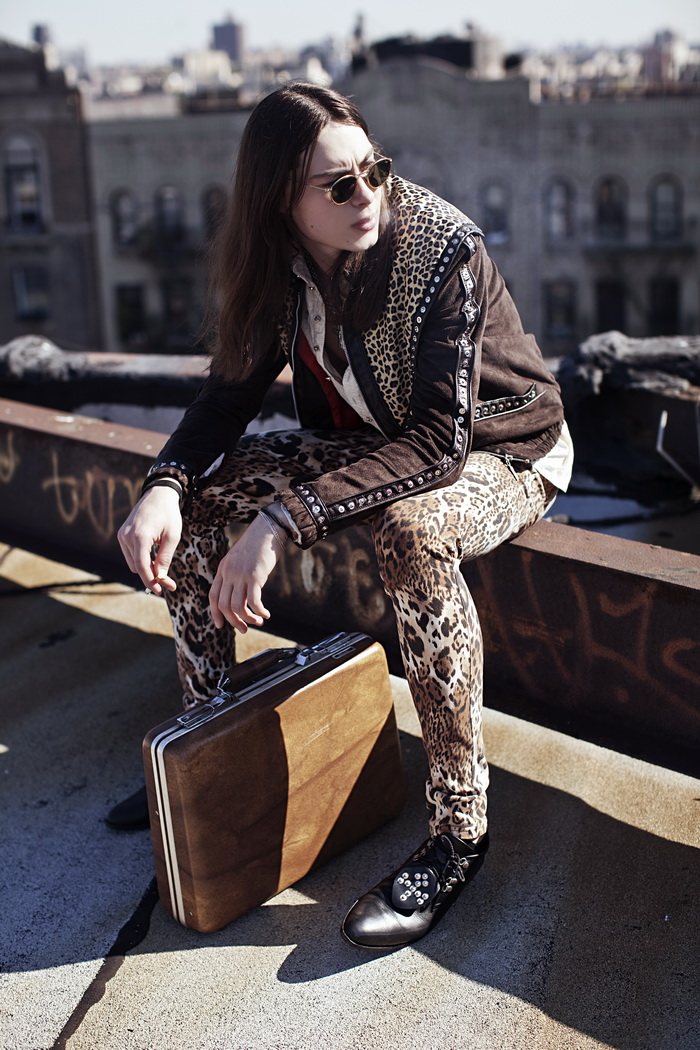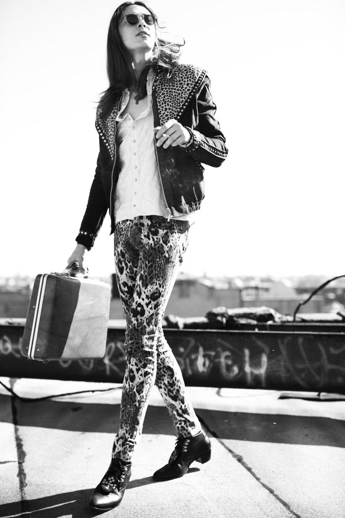 The Misanthrope–Red model Michael Tintiuc connects with photographer Eric White for a collaborative project. Taking to various locations with a certain attitude, Michael is styled in garments and accessories from his label LIRFON’S. Whether dressed in bold snug leather or leopard adorned pants, Michael serves up personal style in spades. Courtesy of – thefashionisto.com