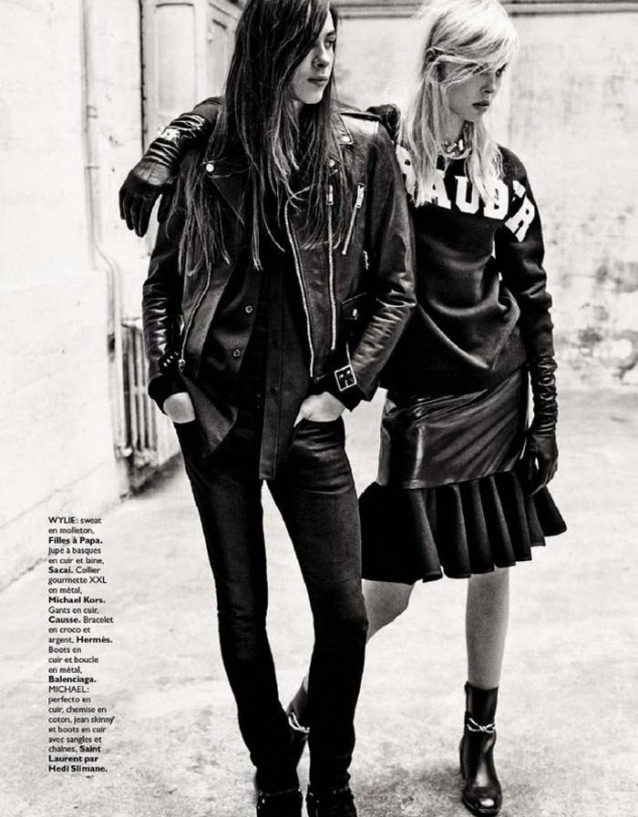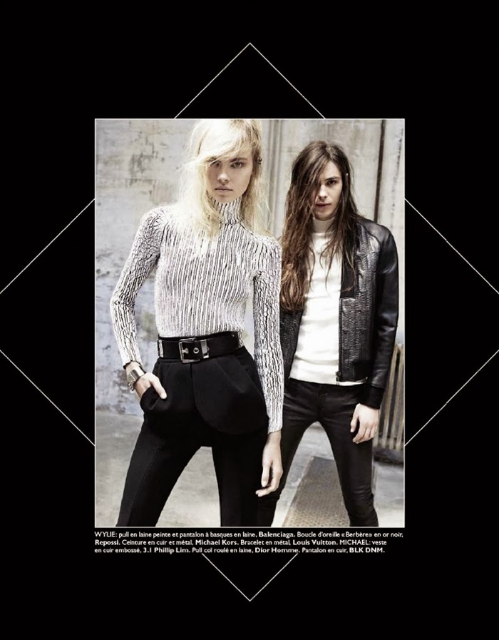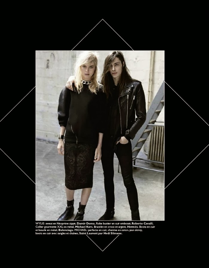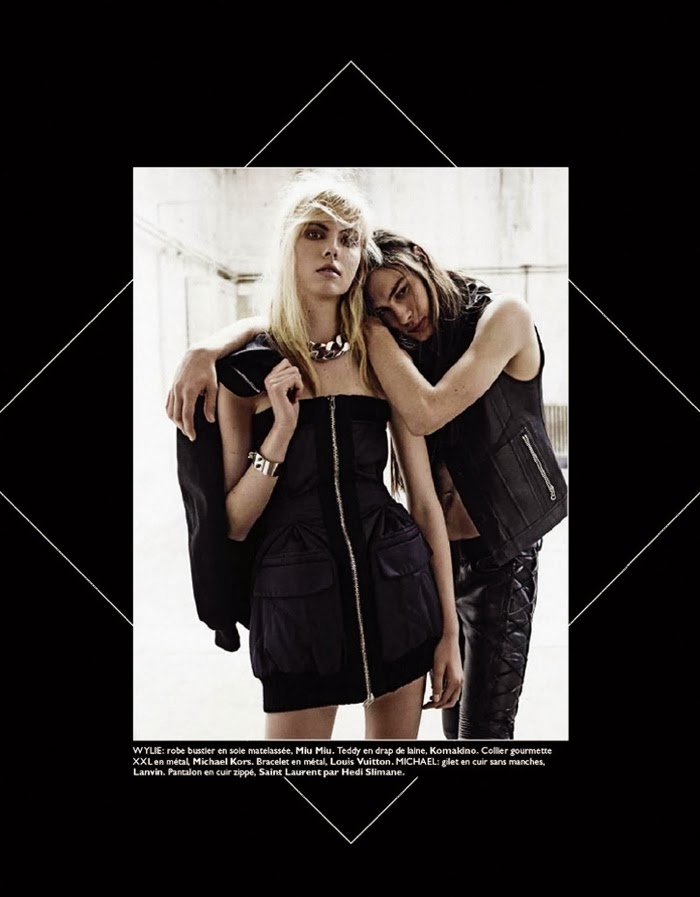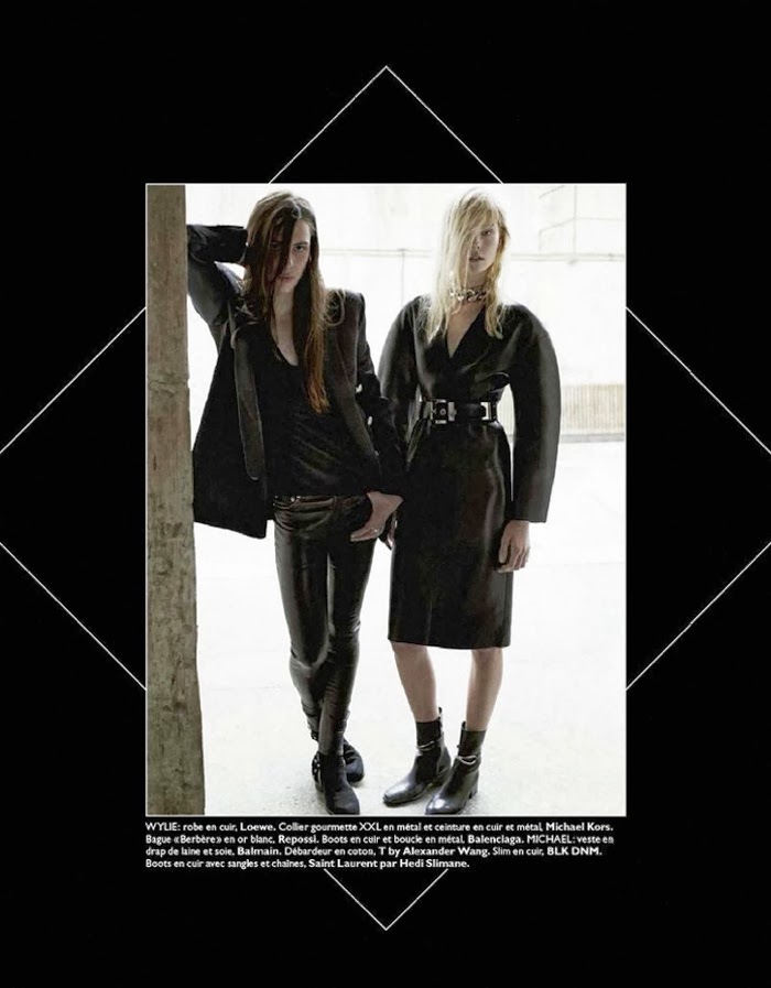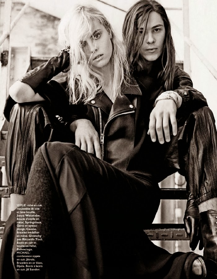 Dark & Moody–Appearing in French magazine Grazia, model Michael Tintiuc is captured in Paris with Wylie Hays by photographer David Roemer. Outfitted with fall’s trendy rock styles, Michael inspires wearing pieces from Balmain, Saint Laurent, Jitrois, Jil Sander and other brands. Courtesy of – thefashionisto.com