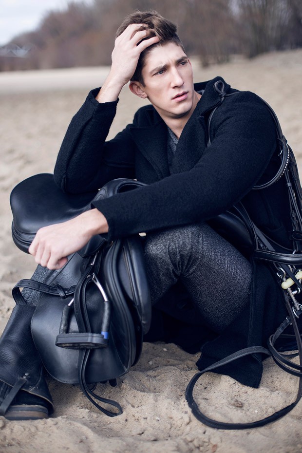 “Fashion photographer Edyta Bartkiewicz captures the cover story of Gentleman Magazine‘s latest edition featuring Michal Baryza styled by Aleksandra Orawczak. For the session model was styled in pieces from Wojtek Haratyk‘s collection. In charge of the makeup and grooming was makeup artist Koleta Gabrysiak.” – Malemodelscene.net