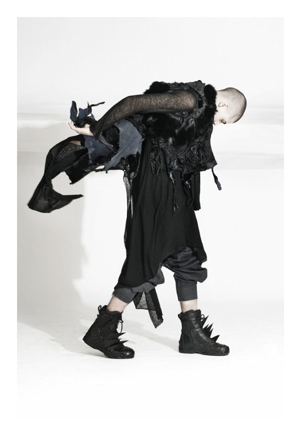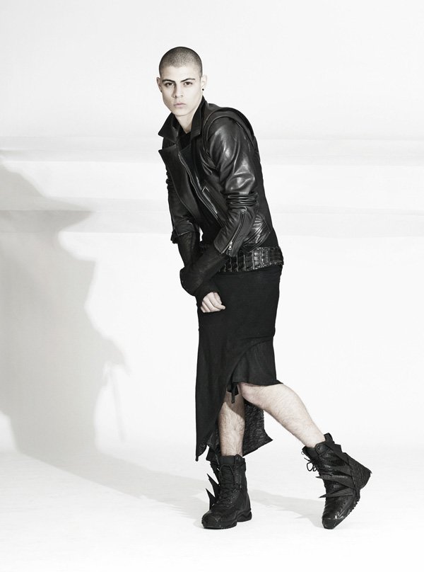 ‘Clad in leather and black, rising star Micky Ayoub tackles Asher Levine’s fall lookbook. Photographed by Char Alfonzo and styled by Sah D’Simone, the collection offers an intriguing mix of deconstructed fabrics and structured leather. Reminiscent of the obvious dark fixtures in fashion, but carving out a unique look, fall’s collection serves a courageous wardrobe of unapologetic attitude.’ – Courtesy of thefashionisto.com