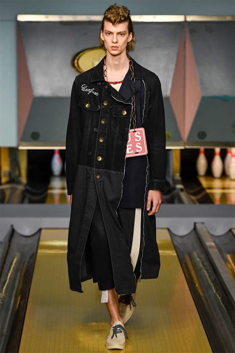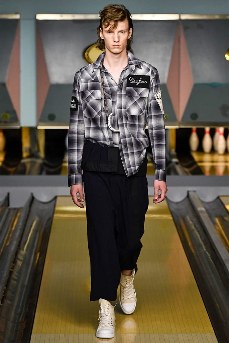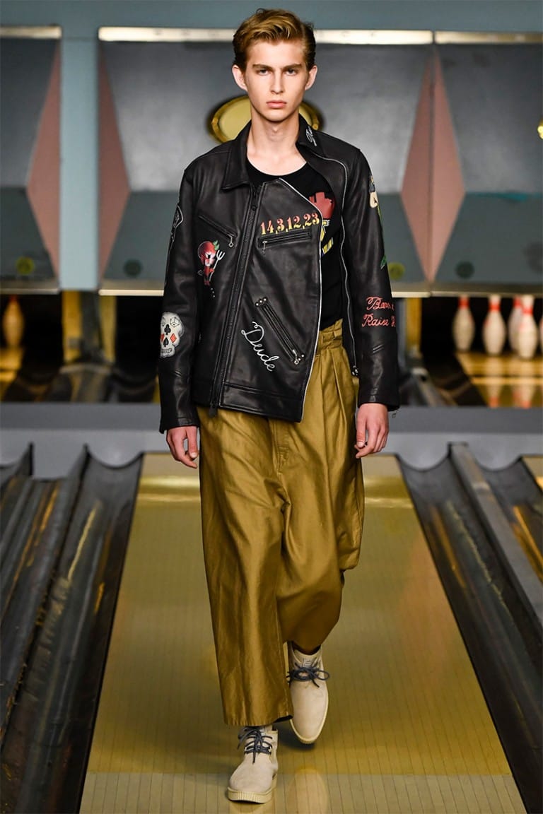 ““NO CLUB LONE WOLF” was the title of Maison Mihara Yasuhiro‘s SS17 collection, showcased for the first time in London. In nomadic style, Mihara has showcased in 3 other fashion capitals including Paris, Milan and Tokyo, and the collection equally resembled the rebellious nature of a drifter. Part cowboy, part bad boy biker, the freedom of 1950’s America was a key influence in Mihara’s collection.