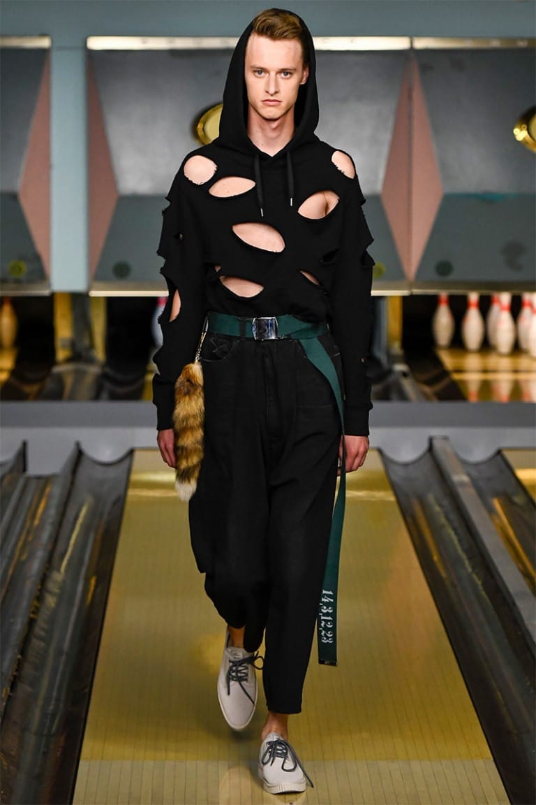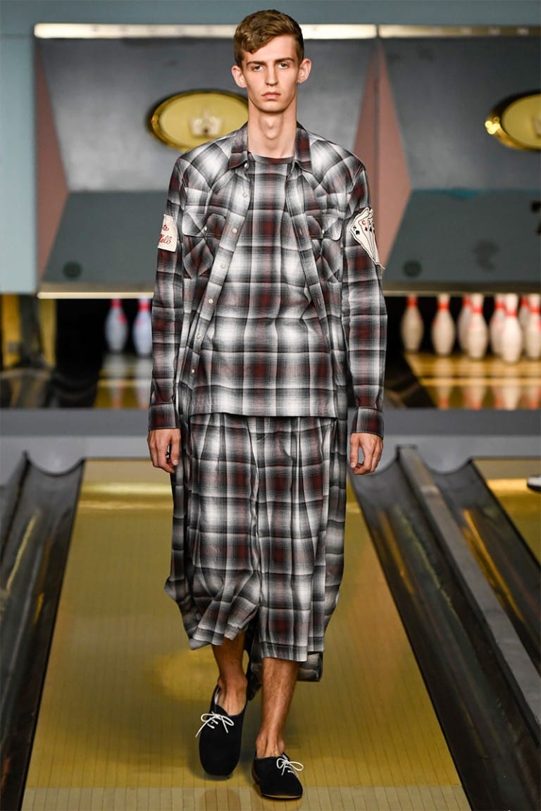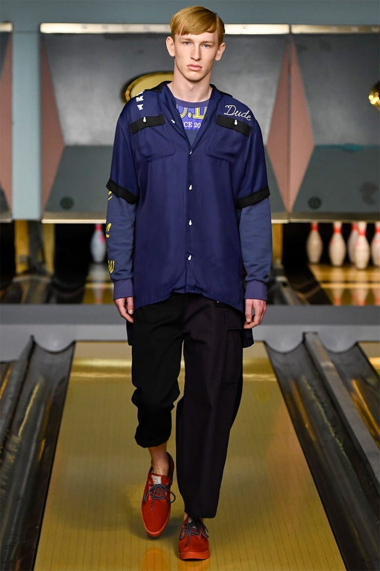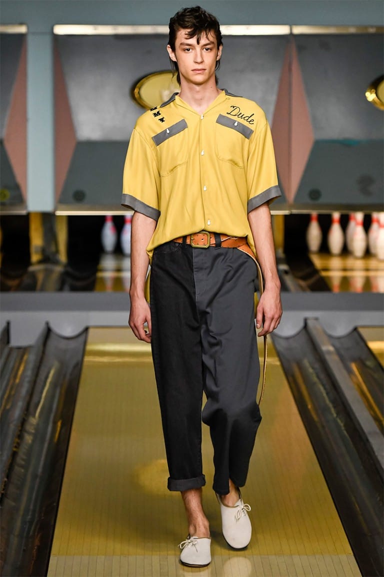 ““NO CLUB LONE WOLF” was the title of Maison Mihara Yasuhiro‘s SS17 collection, showcased for the first time in London. In nomadic style, Mihara has showcased in 3 other fashion capitals including Paris, Milan and Tokyo, and the collection equally resembled the rebellious nature of a drifter. Part cowboy, part bad boy biker, the freedom of 1950’s America was a key influence in Mihara’s collection.