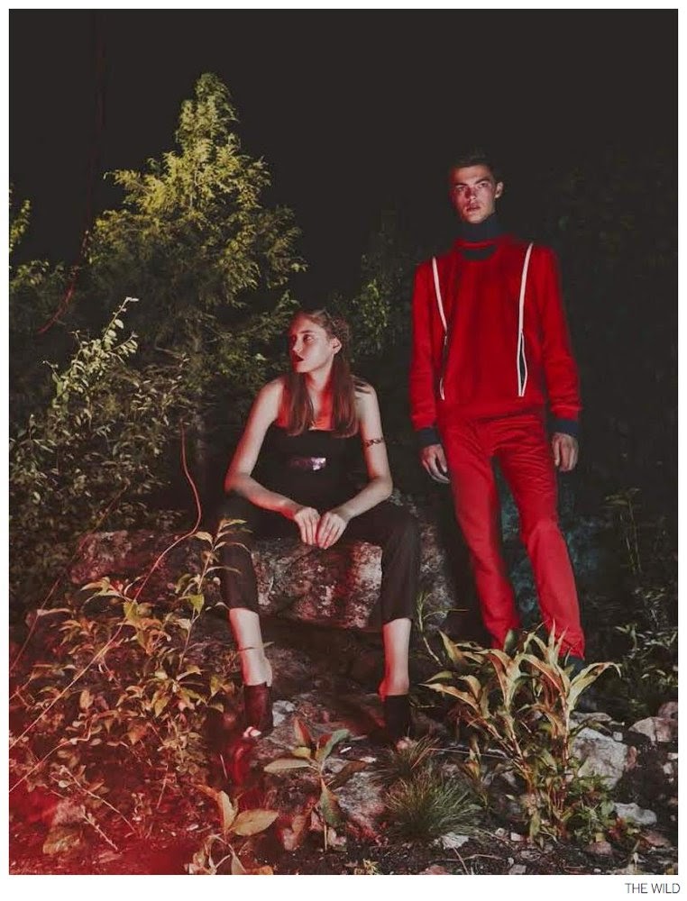 Opening Ceremony Fall Fashions-Brooks model Mike Winchester adopts a sporty style persona for his latest editorial. Photographed for independent magazine The Wild, Mike takes in a late evening campfire captured by photographer Geoff Barrenger. Featuring sporty fall fashions, complete with color blocking and prints from Opening Ceremony, Mike is styled by Lester Garcia. Courtesy of – thefashionisto.com