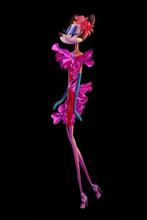 Barneys’s creative director Dennis Freedman said they hit a roadblock with the Disney animators, because, well, Minnie’s body is more real woman (mouse?) than runway. “The standard Minnie Mouse will not look so good in a Lanvin dress. There was a real moment of silence, because these characters don’t change,” Freedman told WWD. “I said, ‘If we’re going to make this work, we have to have a 5-foot-11 Minnie,’ and they agreed. When you see Goofy, Minnie and Mickey, they are runway models.” They even brought a real life model to the Disney animation studios so animators could see how she walked a runway. [Ed. note: What would Lanvin designer Alber Elbaz, who just released a fall campaign featuring real women, say about this!?]