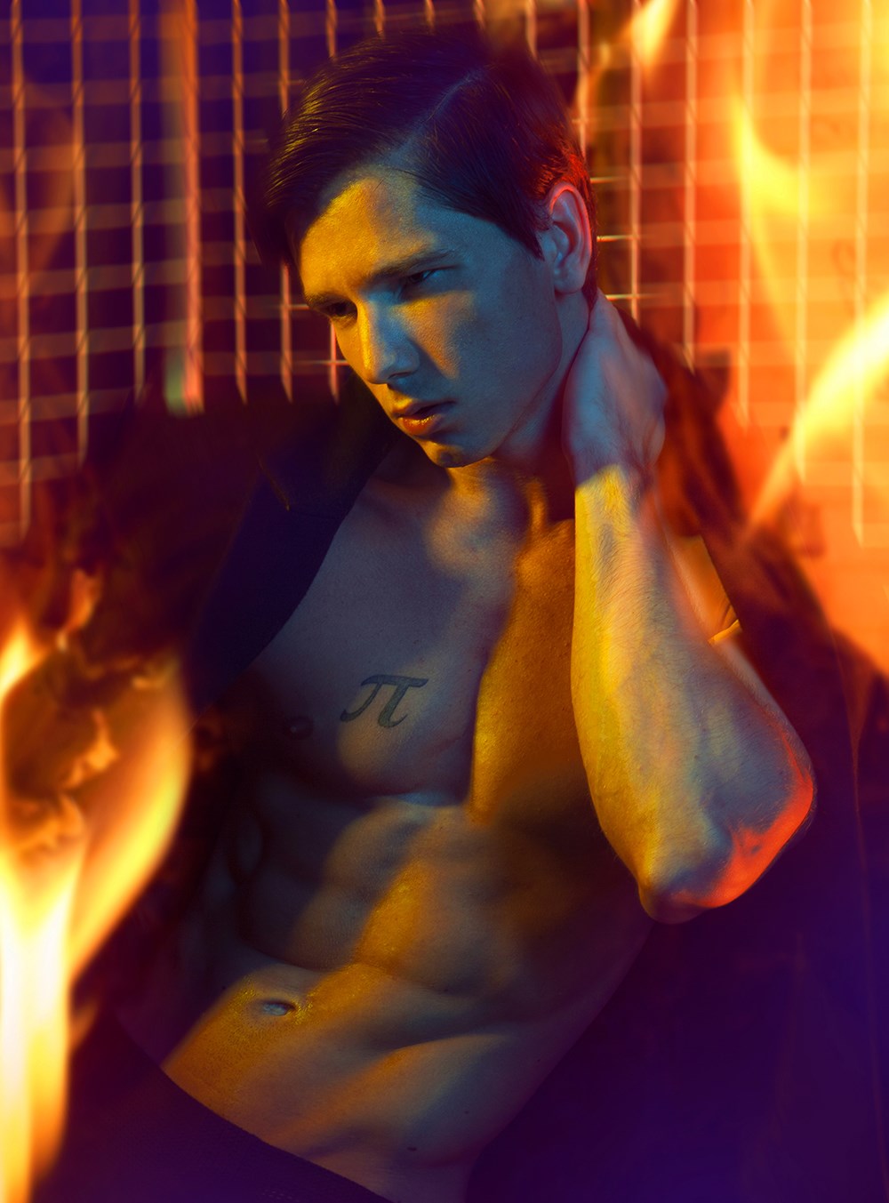 “Mitya Ku at Carrie Models Singapore is photographed by Nino Yap and styled by Christopher Daguimol. Fashion Credits: Long coat – H&M Modern Essential Selected by David Beckham, Netted singlet – H&M, Netted brief (black) – Under9ine, Classic Denim Jacket – Topman, White brief – H&M, Jogger pants (black) – model’s own, Leopard Print Sweater – H&M, Zebra print brief – Under9ine.” – Homotography.com