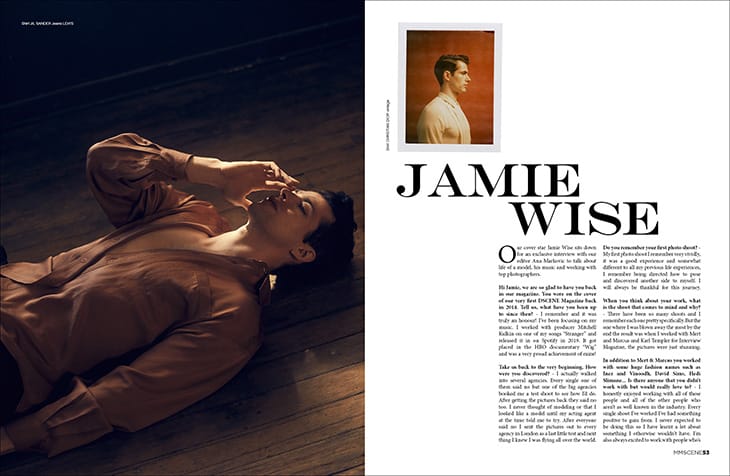 Discover our MMSCENE Magazine‘s edition thirty-four with cover stars JAMIE WISE and RODRIGUE DURARD on the frontline of our latest project. In addition to Jamie and Rodrigue we also have over 100 pages of exclusive interviews and editorials featuring talented creatives and models such as Naomi Ghunter, Florian Van Bael and Conrad Bromfield to name a few.