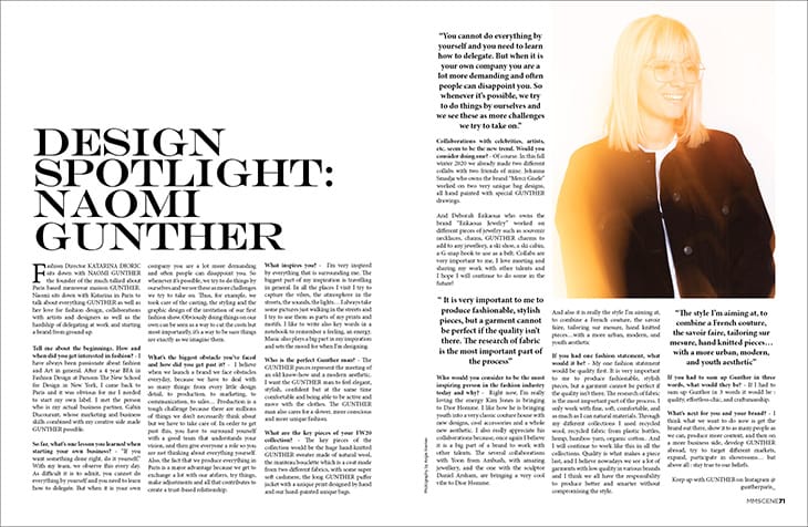New issue features also inspiring conversations with Paris based designer on the rise Naomi Gunther but also male model industry icons such as Conrad Bromfield, Stefan Pollmann as well as our cover star Jamie Wise. All of them are generously sharing note-worthy advice for people looking for a break in the fashion and design industry. By the looks of it year 2020 will erase fashion industry’s seasonal rhythm thus our contributing writer Quade Au discusses key trends and essential pieces expected to shape the coming season but also winter in front of us.