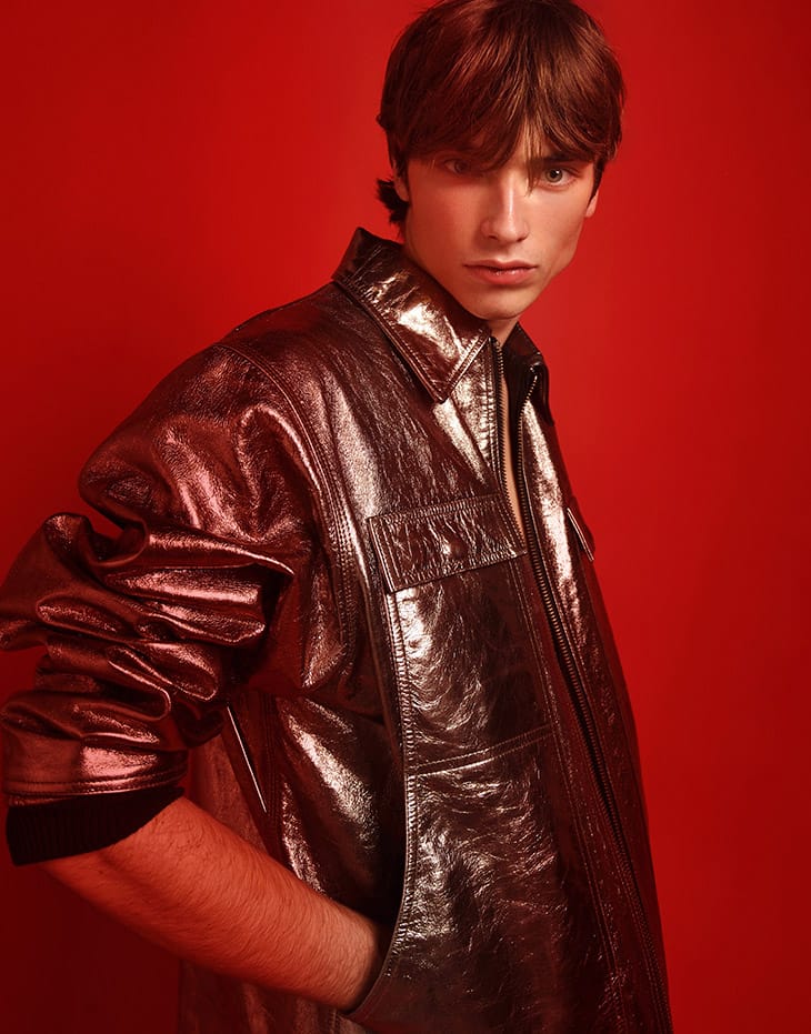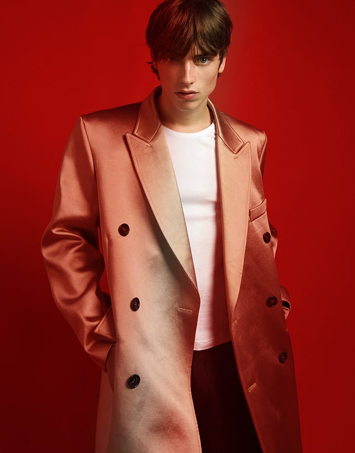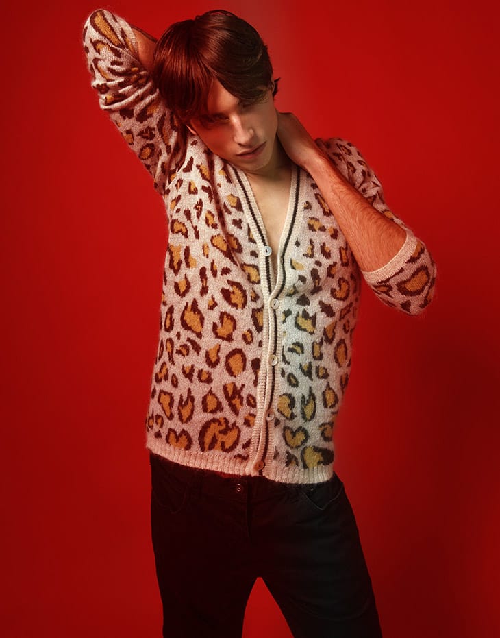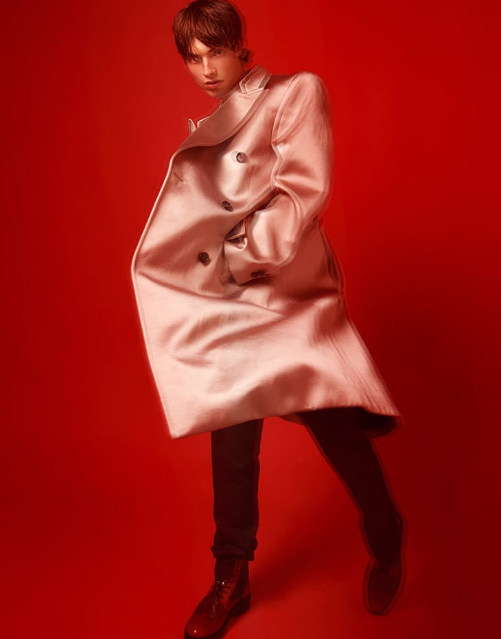 For the story Marcellin is wearing selected pieces from Gucci, Blue Marble, Vivienne Westwood, Karl Lagerfeld, and Christophe Terzian.” – Malemodelscenen.net