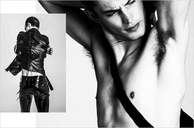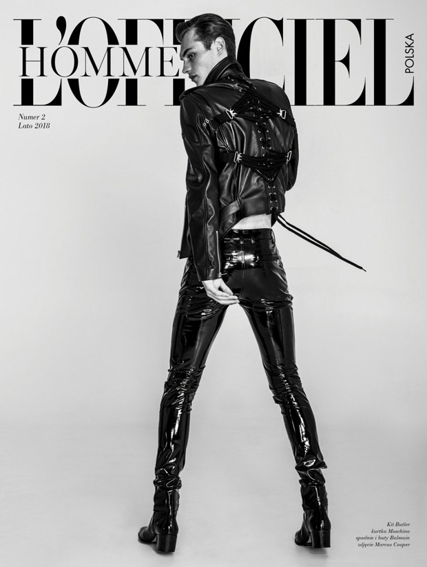 “L’Officiel Hommes Poland enlists top model Kit Butler to star in the cover story of their second edition captured by fashion photographer Marcus Cooper. Styling is work of Lisa Jarvis, with beauty from makeup artist Alexandra Fragga, and hair stylist Evan Frausto.” – Malemodelscene.net