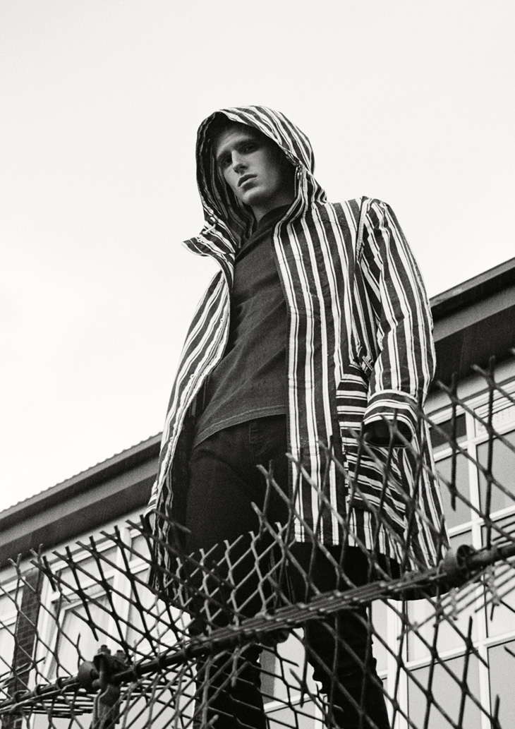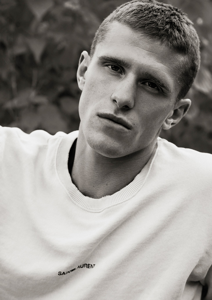 For the story Matt is wearing selected pieces from top brands such as Raf Simons, Saint Laurent, Balmain, Versace, Hunter, and Prada.