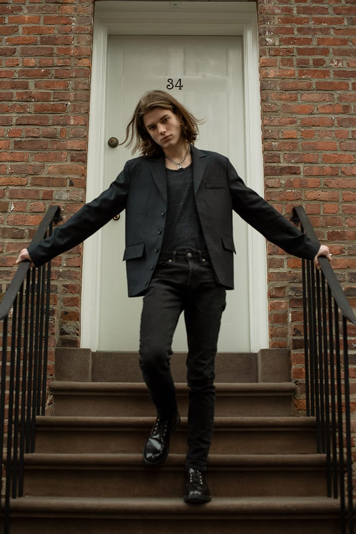 For the story Nathan is wearing selected pieces from Carter Young, Manonik, One DNA, Calvin Klein, and Zara.