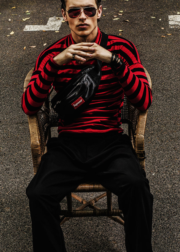 For the session captured in Shanghai, Nikolai is wearing selected pieces from Adidas Original, Balmain, Zara, Balenciaga, Supreme, Fear of God, Dsquared, and Hugo Boss. ” – Malemodelscene.net