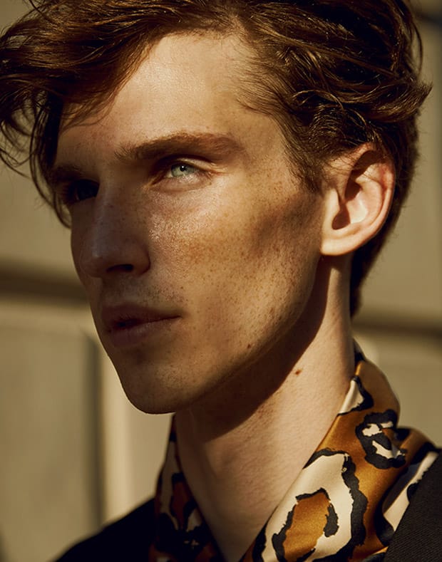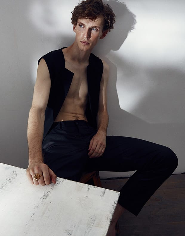 For the session Alex is wearing selected pieces from the likes of Tous, Zara, Thom Browne, Comptoir GL, Salvatore Ferragamo, Brunello Cuchinell, Shine Original, Guess, Rocco P, and Joseph. ” – Malemodelscene.net