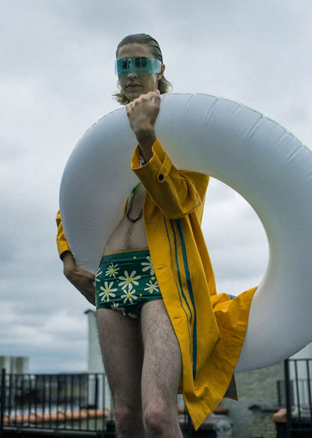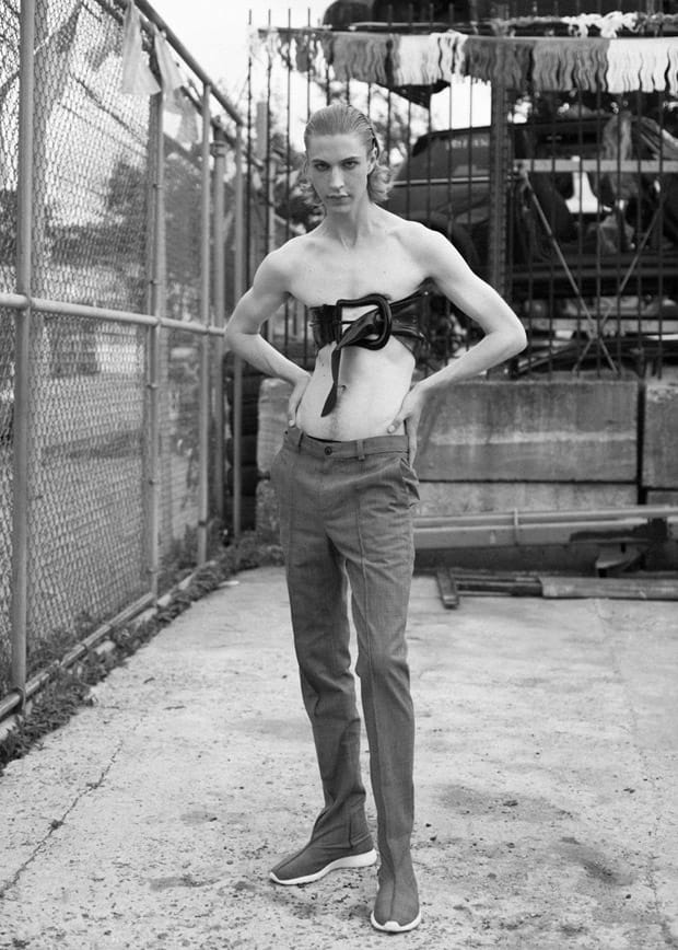 For the session Andrew is wearing selected pieces from up and coming NYC designers such as Tableaux Vivants, Kenneth Ning, Hardeman, Queenie Cao, Laruicci, Rochambeau, Bcalla, Músed, Paom X Danky Dank, and Drty Smmr.” – Malemodelscene.net