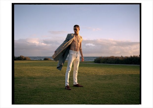 “The Art and Power of the Wind story captured exclusively for MMSCENE STYLE STORIES by fashion photographer Drew Wheeler features the handsome Boki Milinkovic. For the session Boki is wearing selected pieces from Paul Smith, Dries Von Noten, Acne, RM Williams, Carol Christian Poell, CK underwear, Maurizio Amadei, Adidas, and Crockett and Jones.” – Malemodelscene.net
