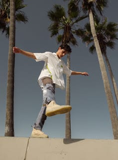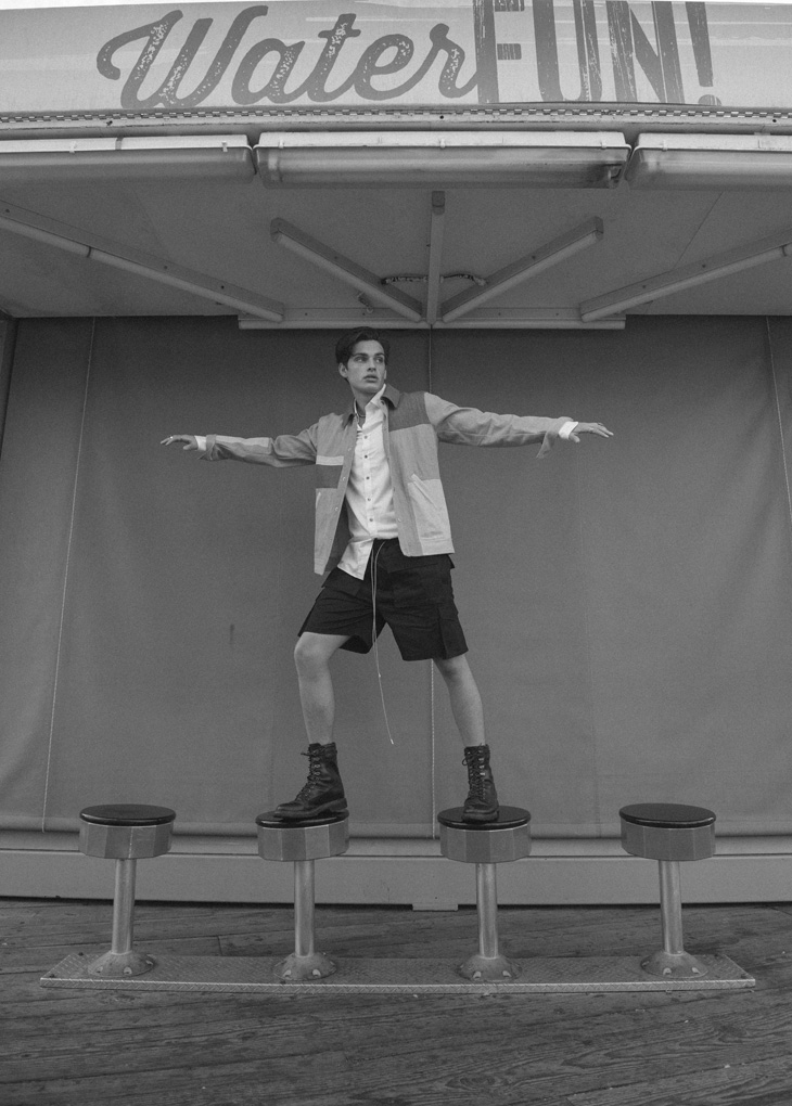 In charge of styling was Jorien Geelen, who for the session selected pieces from Malan Breton, Y.T.G, Calvin Klein, MNML, Nothing New, Underguise, Zensai, Pyrrha, Vans, Thursday Boots, and Dr. Martens.