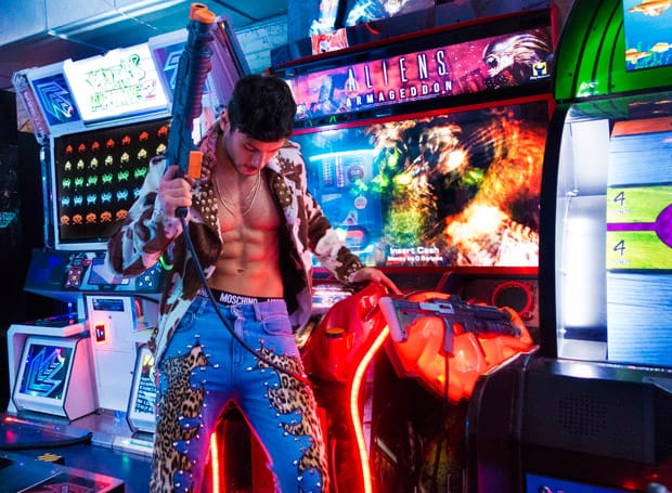 “The handsome Daniel Garofali at Wilhelmina Models stars in Neo Rodeo story captured exclusively for MMSCENE STYLE STORIES by fashion photographer Cowan Whitfield. For the session Daniel is wearing selected looks from Moschino, and jewelry by Britt Bolton.” – Malemodelscene.net
