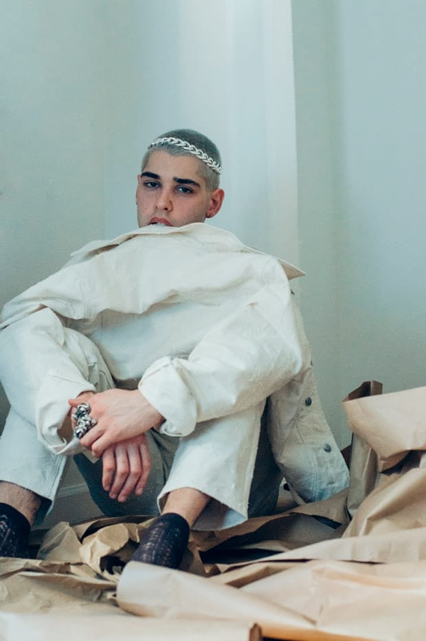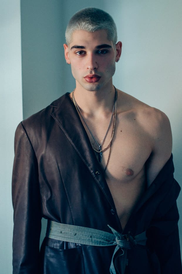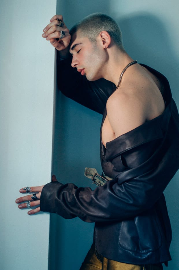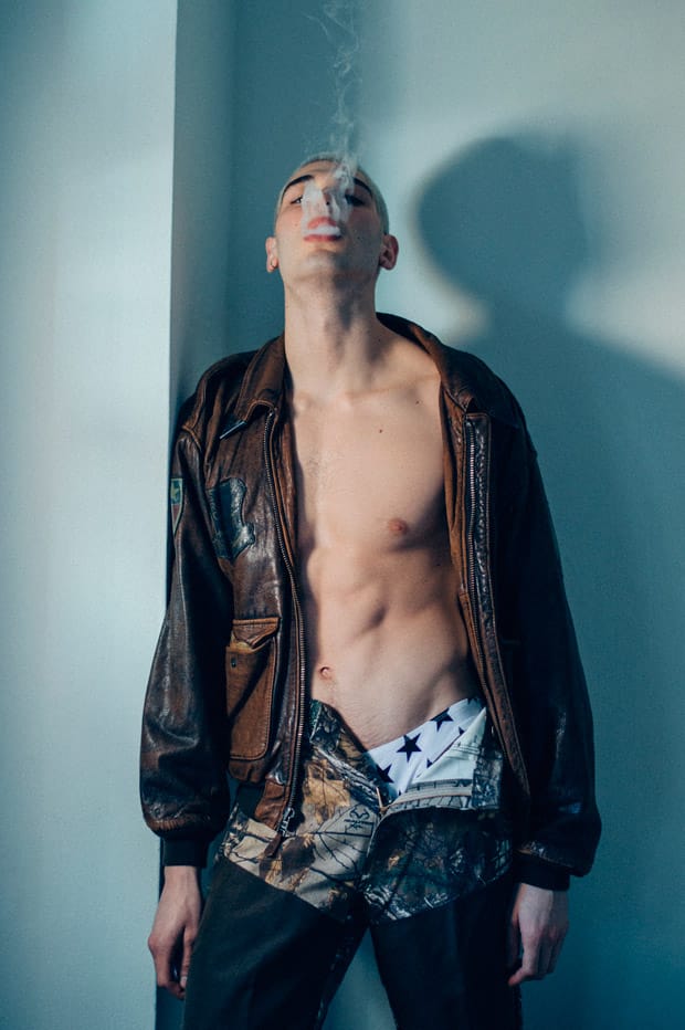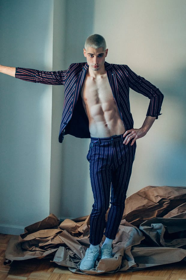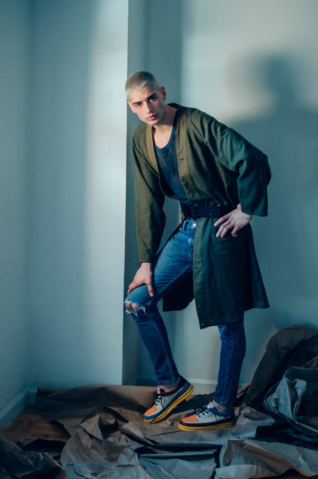 For the session Evan is wearing pieces from Loro Piana, MSGM, Burberry, Rag & Bone, H&M Studio, Urban Outfitters, Levi’s, Campers, AGPTEK, Wrangler, Avirex, Gary Majdell Sport, Jeffrey West, ZARA, Champion, New Balance, Dickies, Relentless, and Brooks Brothers.” – Malemodelscene.net