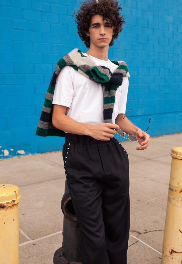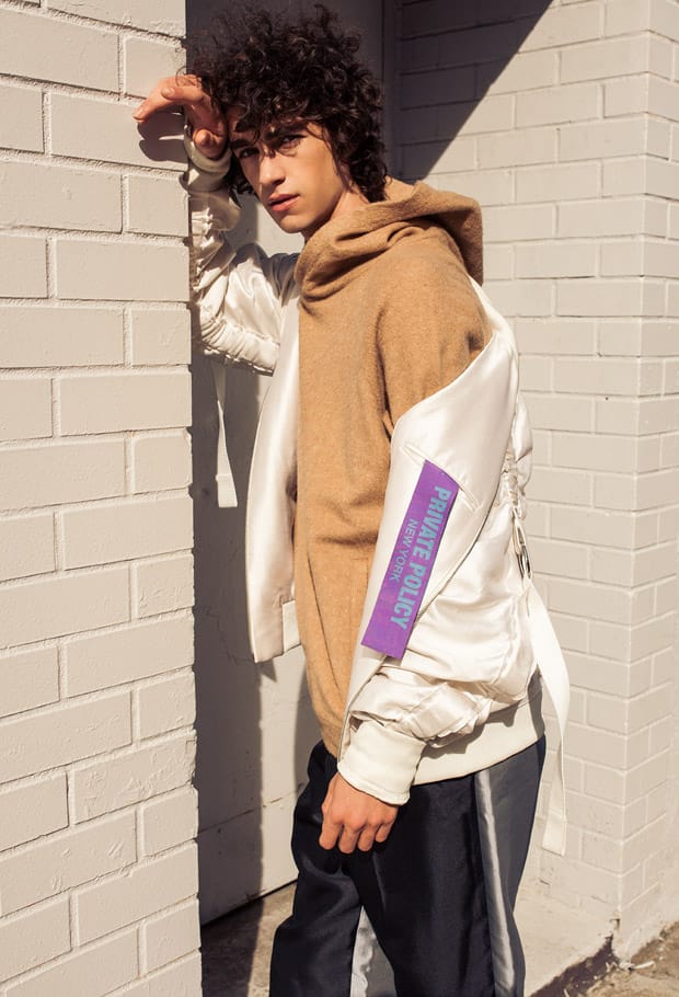 In charge of styling was Nia Simone, who for the session selected pieces from David Hart, Private Policy NYC, Scotch & Soda, Stefano Castelli, Matiere, Press Petit Studio NYC, House of Future, and Ray-Ban.” – Malemodelscene.net
