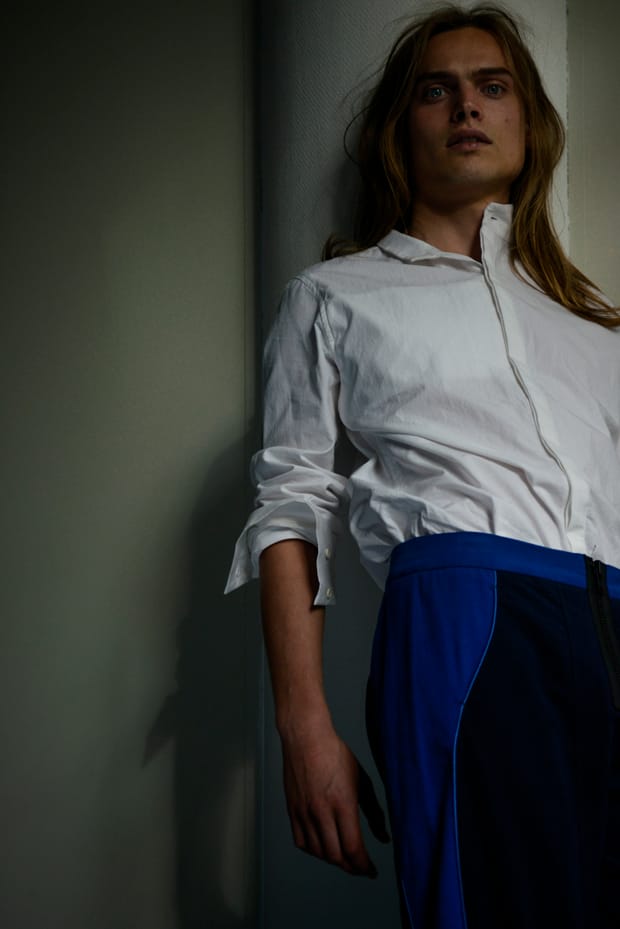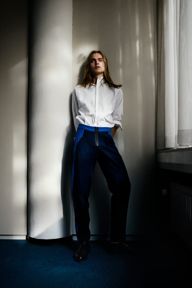 “Fashion photographer Chris Philippo captured the Hoarfrost story exclusively for MMSCENE STYLE STORIES featuring model Luuk represented by RICHESmgmt. In charge of styling was Sato Okoro, who for the session selected looks from the likes of Calvin Klein, Alexander McQueen, Hugo Boss, to name a few. (image: Coat INDIVIDUALS, Shirt ugo Boss, Trousers INDIVIDUALS).” – Malemodelscene.net