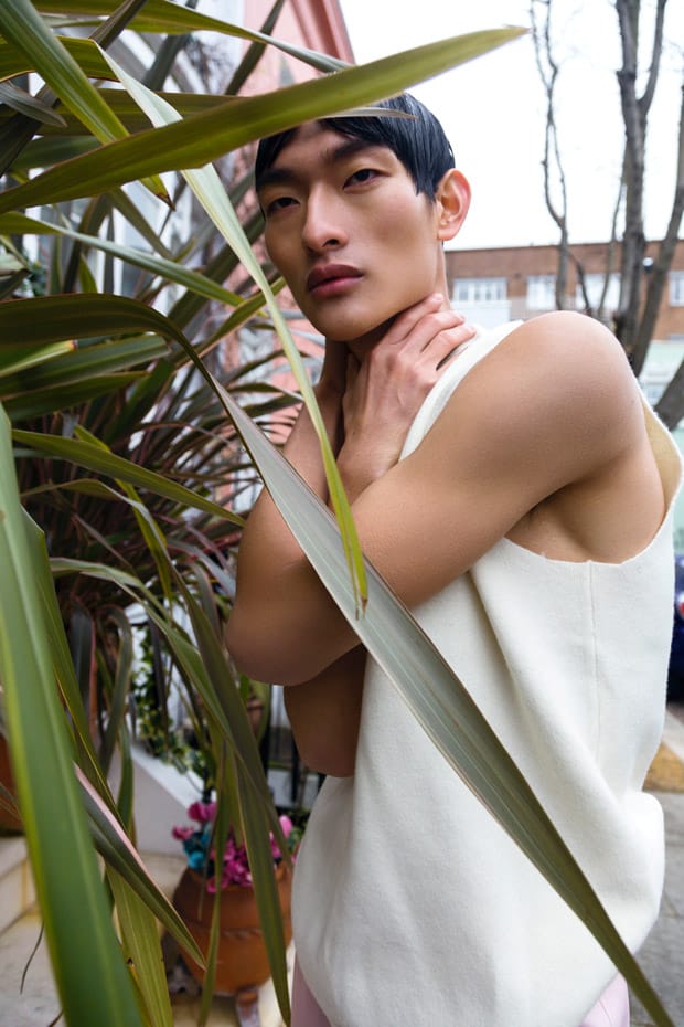 Beauty is work of hair stylist Makoto Hayashi using Bumble & Bumble and Playlist Shiseido, and makeup artist Crystal Liu using M.A.C. cosmetics. ” – Malemodelscene.net