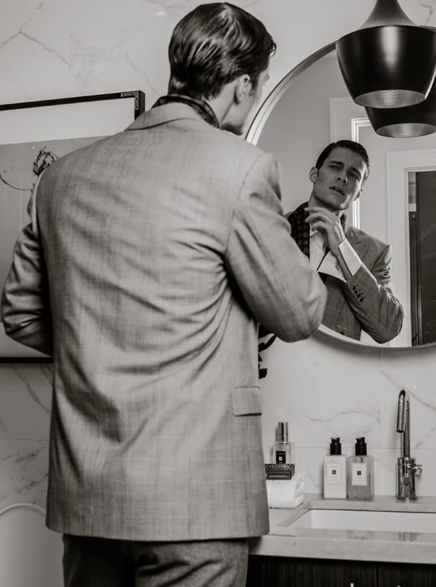 “The handsome Matthew Vande Vegte at Two Management stars in exclusive series captured and styled for MMSCENE STYLE STORIES by fashion photographer Hoang Josh. Grooming is work of Jukka at Plutino Group. For the story Matthew is wearing selected pieces from the likes of Brioni, Versace, Alexander McQueen, Miu Miu, Burberry, and Fendi among other.” – Malemodelscene.net