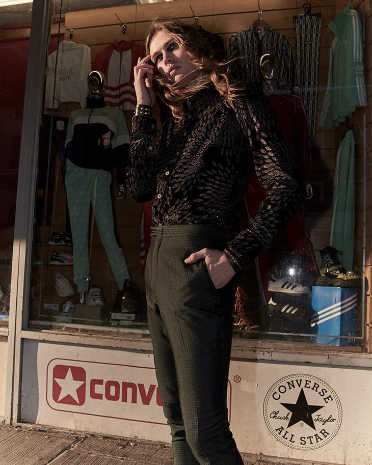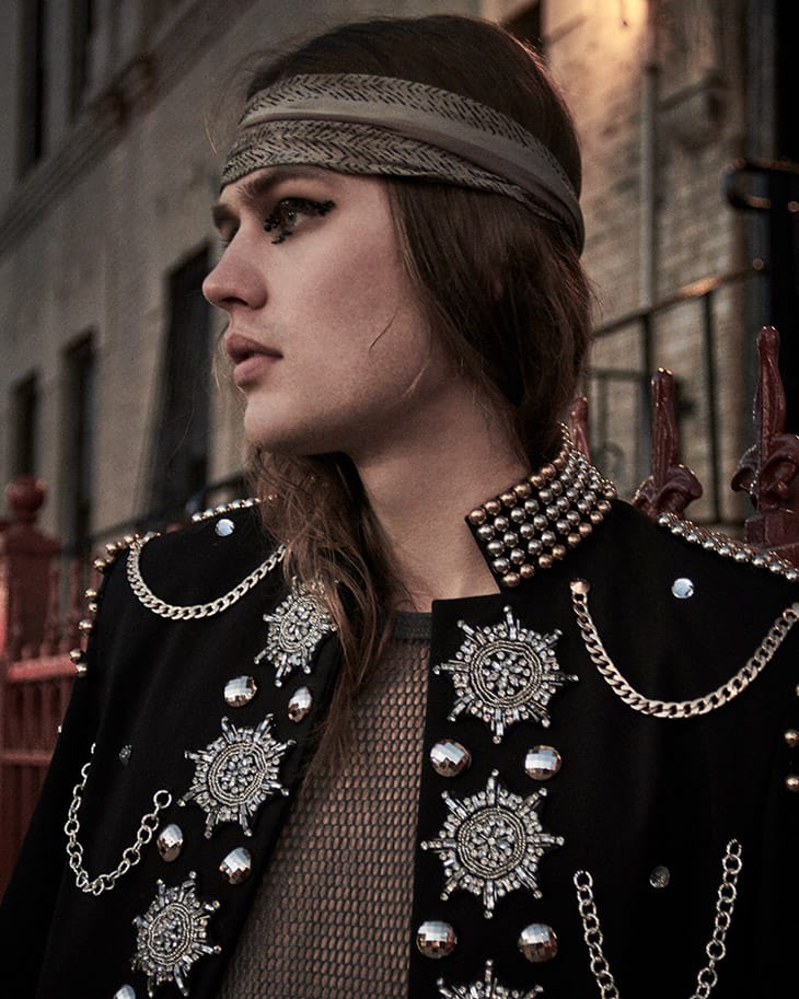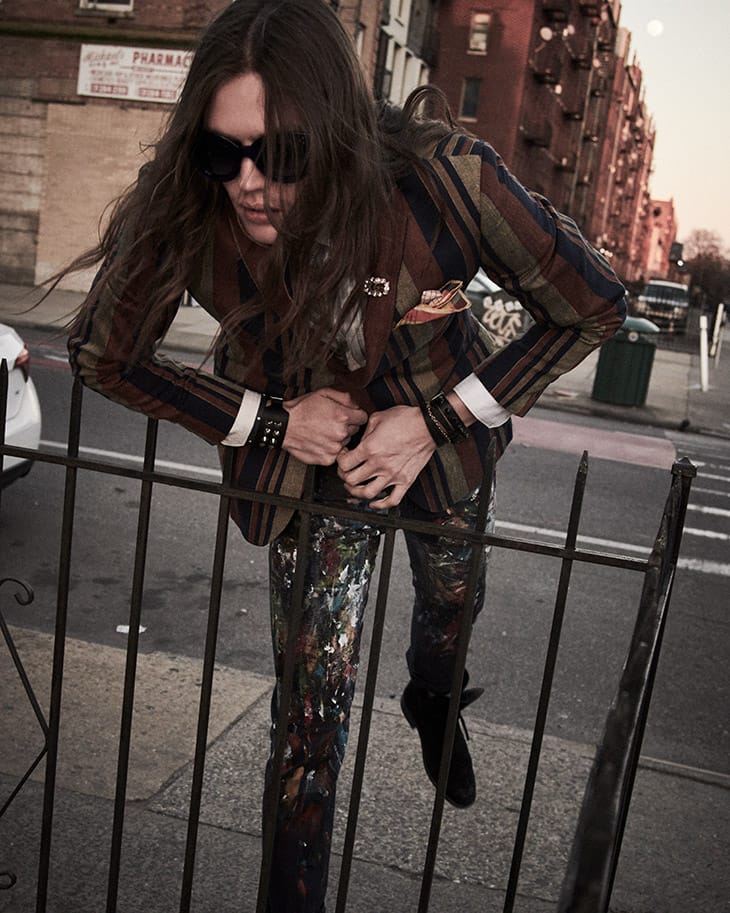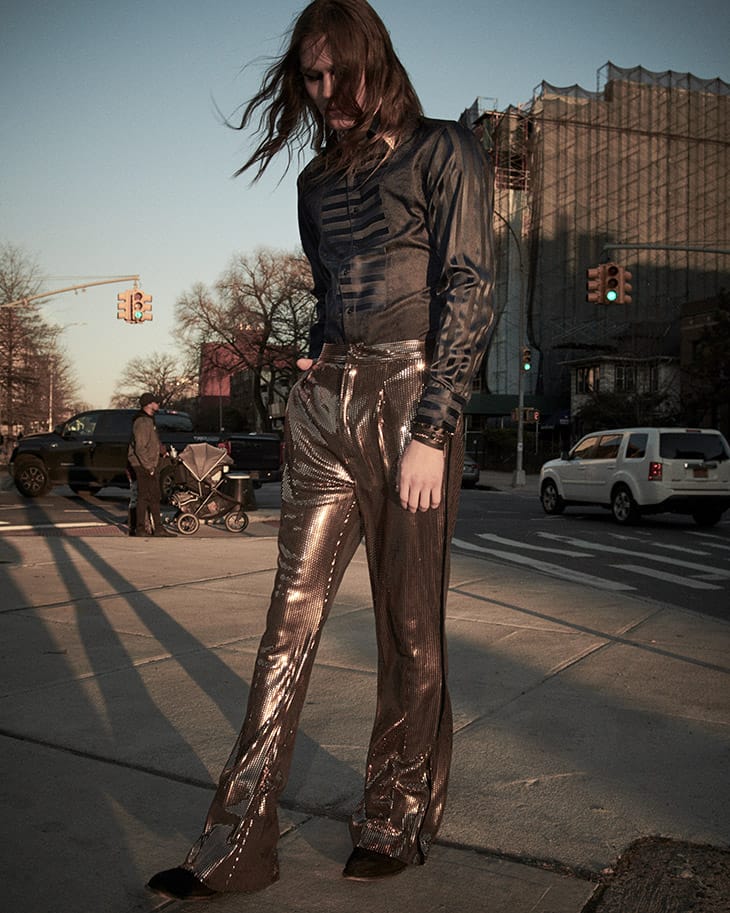 In charge of styling was Alexander Garcia, who for the session selected pieces from Rossi, Burberry, Balenciaga, Alexandro Fratelli, David Hart, Desigual, John Varvatos, The Leather Man, Robert Graham, Gucci, Tom Ford, Jil Sander, Turnbull & Asser, Prive Revaux, John Varvatos, WhoCaresWhyNot, Helmut Lang, Missoni, ReFash_Studios, and Roberto Cavalli.” – Malemodelscene.net