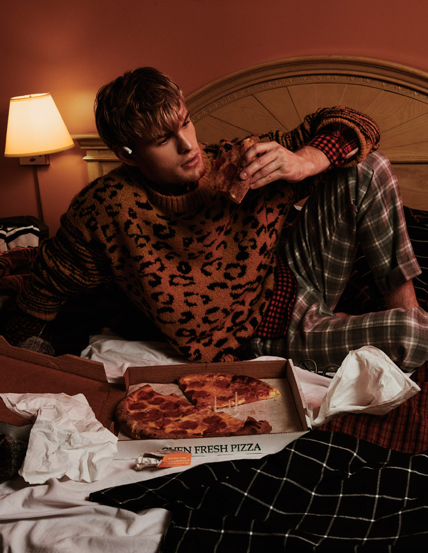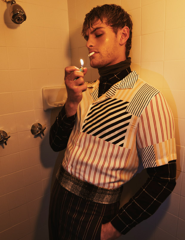 For the story Noah s wearing selected pieces from top brands such as Missoni, Ralph Lauren, Topman, Karl Lagerfeld, Vivienne Westwood, Calvin Klein, Bottega Veneta, Neil Barrett, Scotch and Soda, Marni,A.P.C, Georgio Armani, Alexander Wang, Dolce & Gabbana, Etro, Theory, and 2XIST.” – Malemodelscene.net