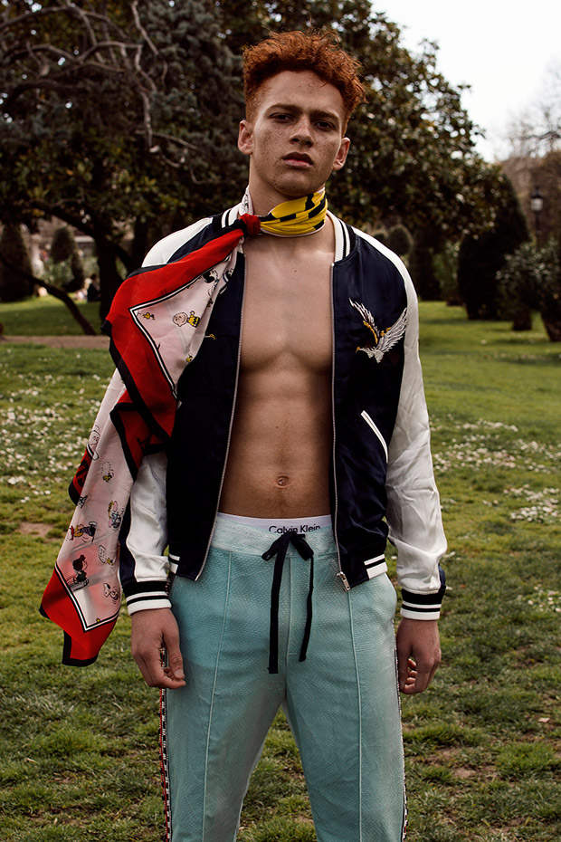 “Boys, Flowers and Stupid Love story captured exclusively for MMSCENE STYLE STORIES by fashion photographer Laura Chia features the handsome Tashi represented by Trend Models. For the session stylist Patricia Garcia Ladron de Guevara, assisted by Marc Angosto, selected pieces from Sandro Paris, Custo Barcelona, Essentiel, and Fred Perry.