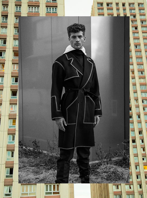 For the session Timothe is wearing selected Fall Winter 2016.17 looks and accessories from brands such as Wanda Nylon, Rives, Tim Bargeot, Black Dandy, and Dr. Martins among other. ” – Malemodelscene.net