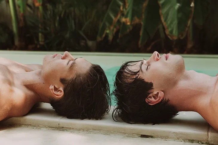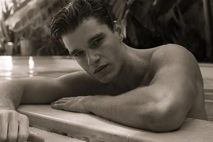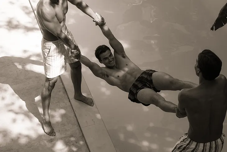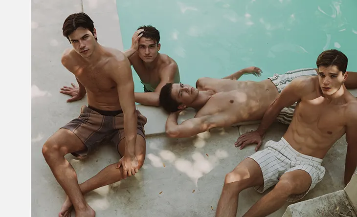 Model Gang Matija Bogicevic, Kosta Zecevic, Nikola Dencic, & Kosta Glisic Are Poolside.