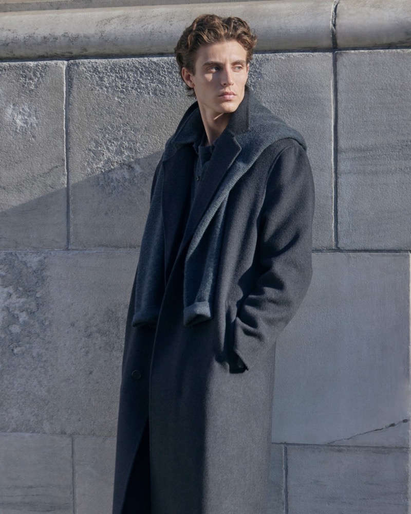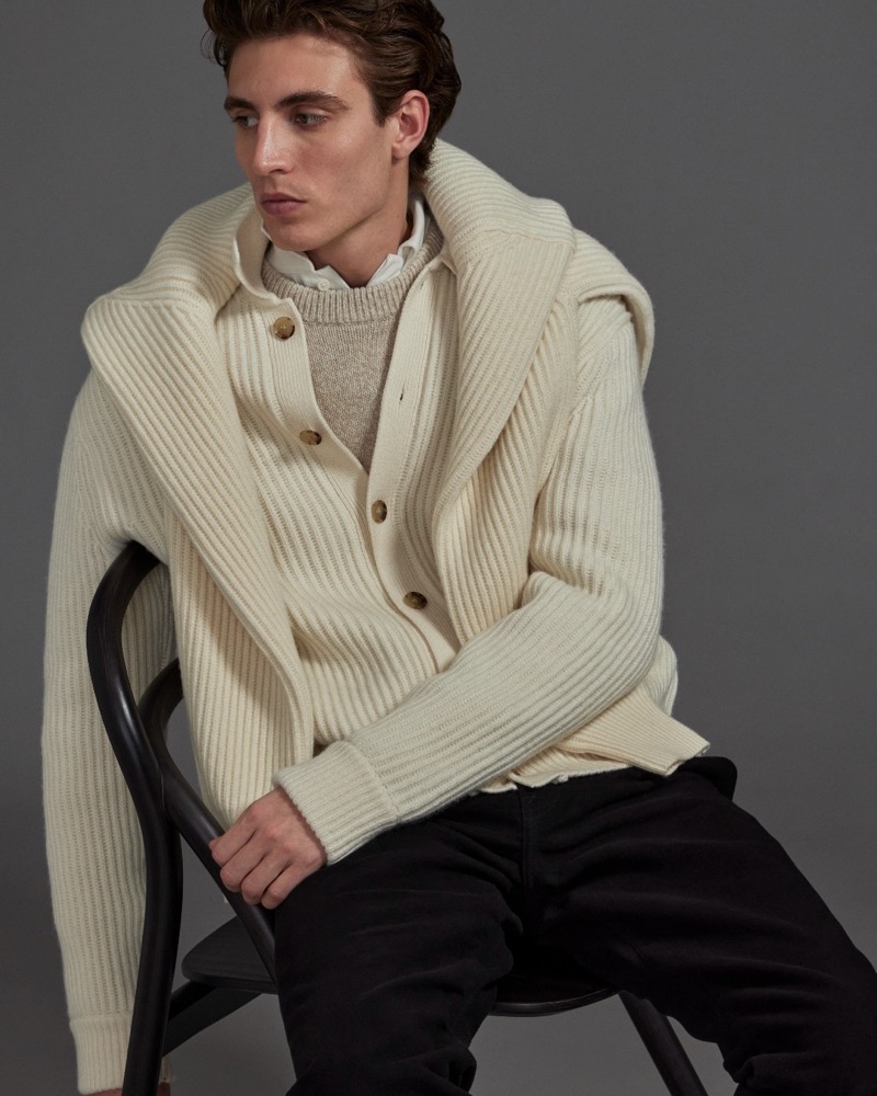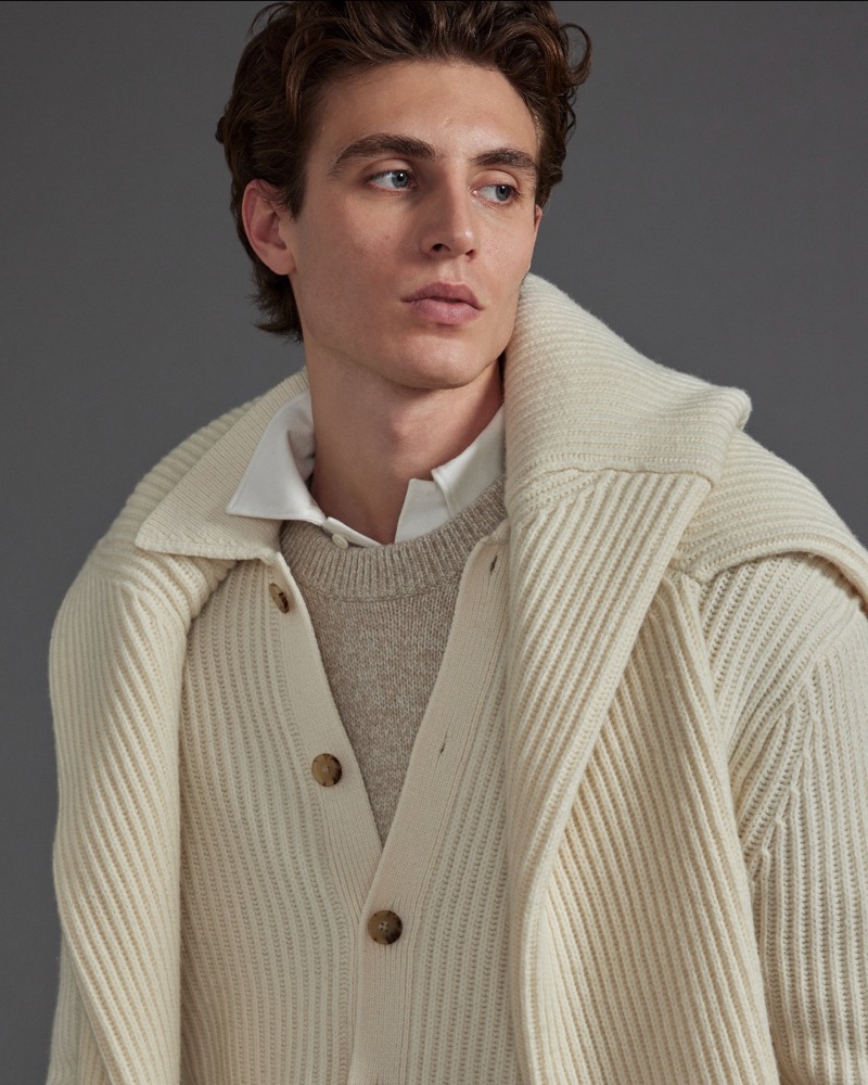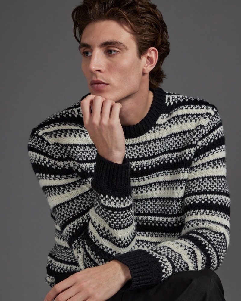Model Joaquin Ibarra Struts Winter Knitwear For Club Monaco.