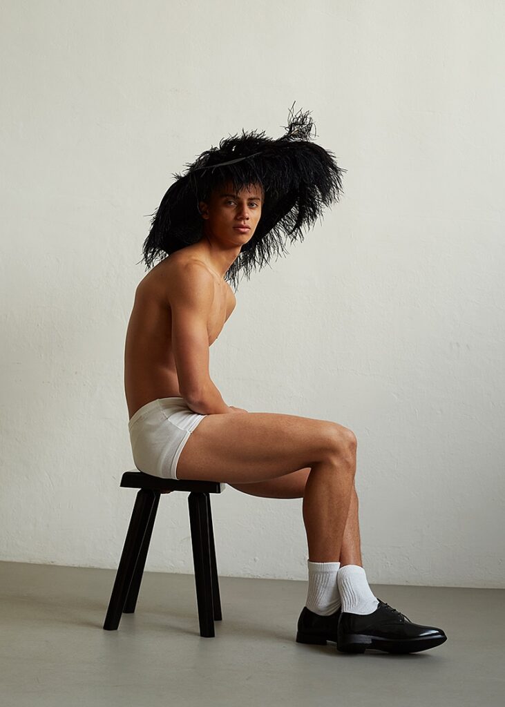 Leo Edlund is feeling feathery, serving all the looks and sensuality!