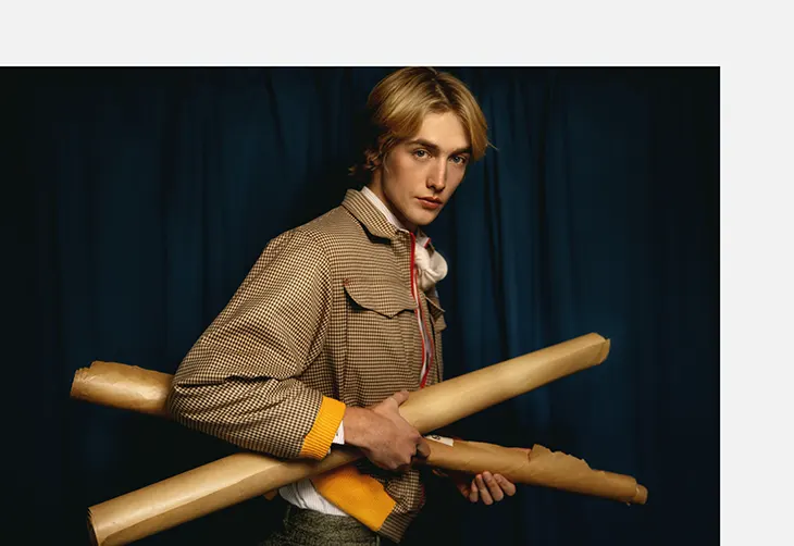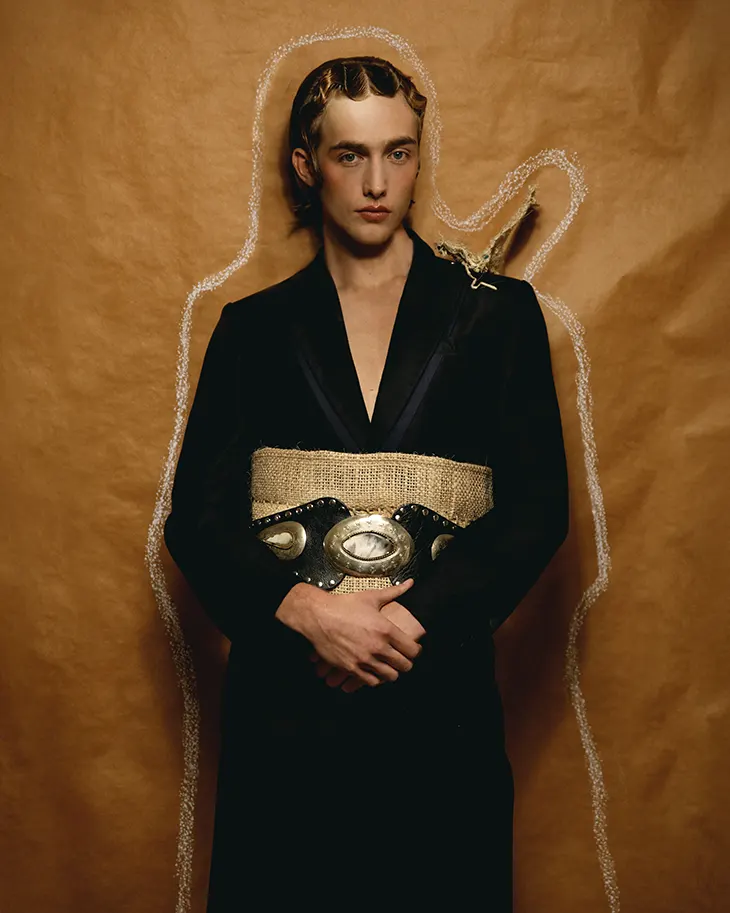 Moreton’s presence anchors the shoot, balancing sharp tailoring with fluid poses. The editorial continues MMSCENE’s tradition of pairing rising models with avant‑garde visual narratives.
