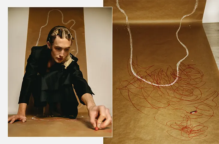 Daniel Moreton stars in MMSCENE’s “Land Surfaces,” shot by Irene Orenga with set design by Adriana Fresnillo Frost & Nico Plasencia Carrera.