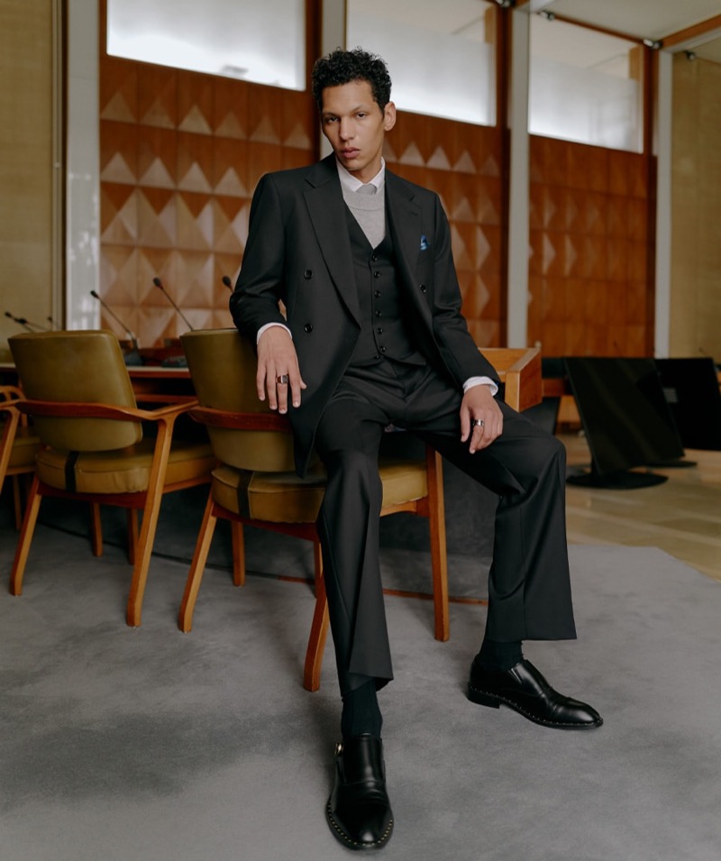 That’s right—young rising model Ronald Turner looks dapper dandy in his threads and poses. With a flair for elegance and edge, Turner brings the heat to INDOCHINO’s Fall/Winter 2025 lineup.