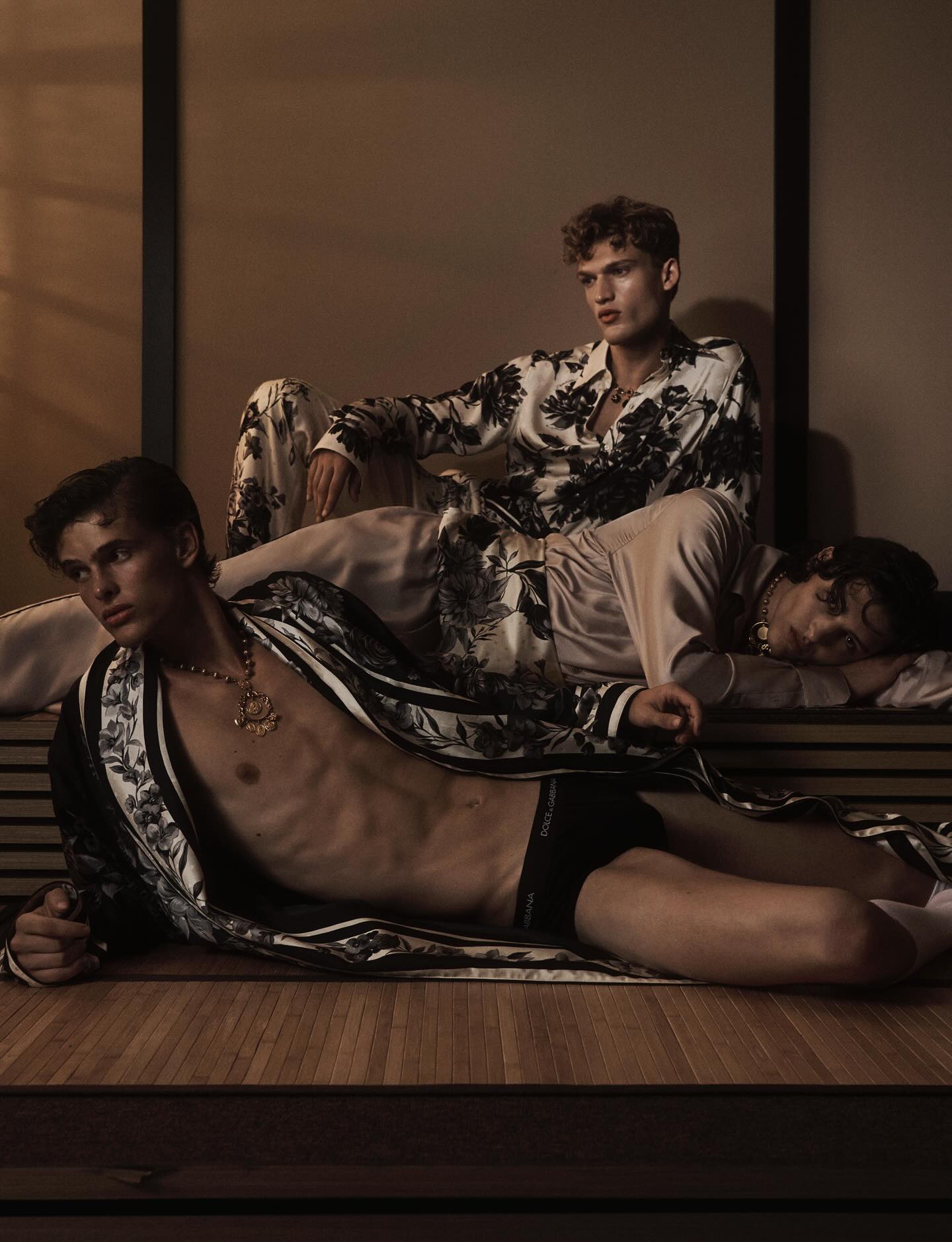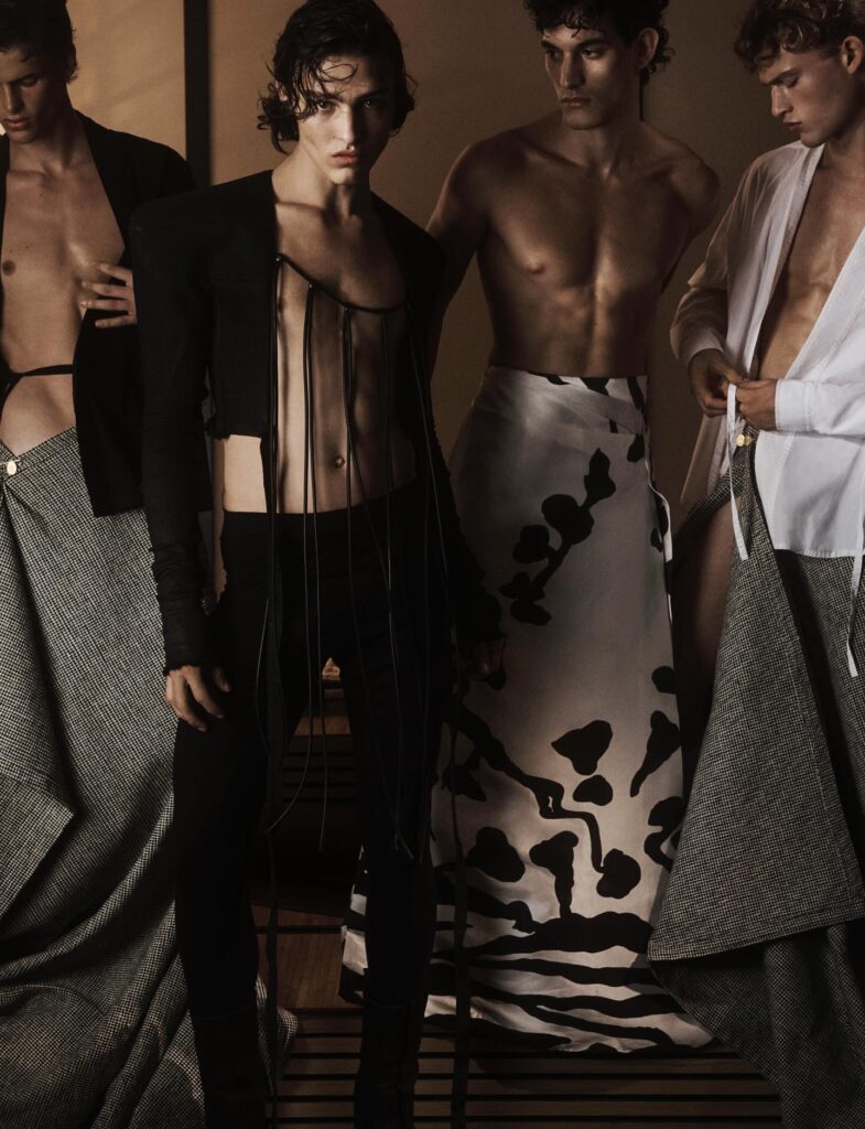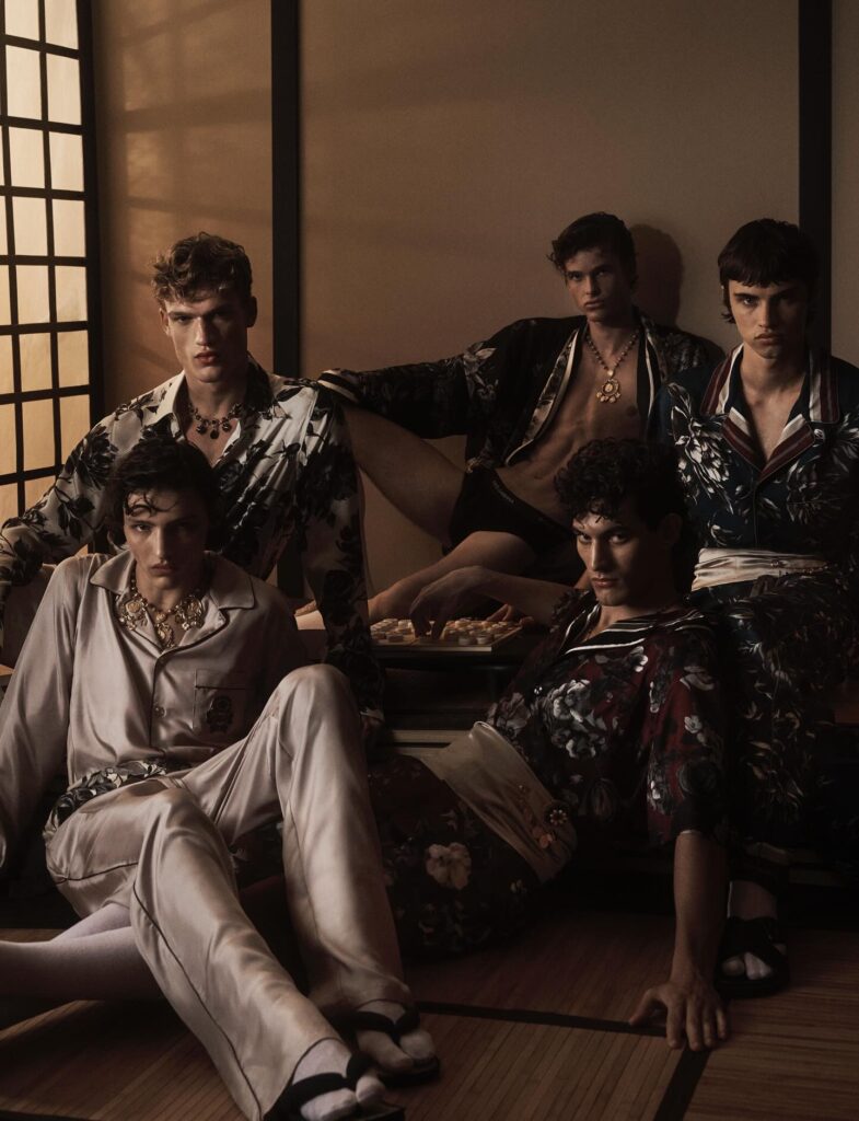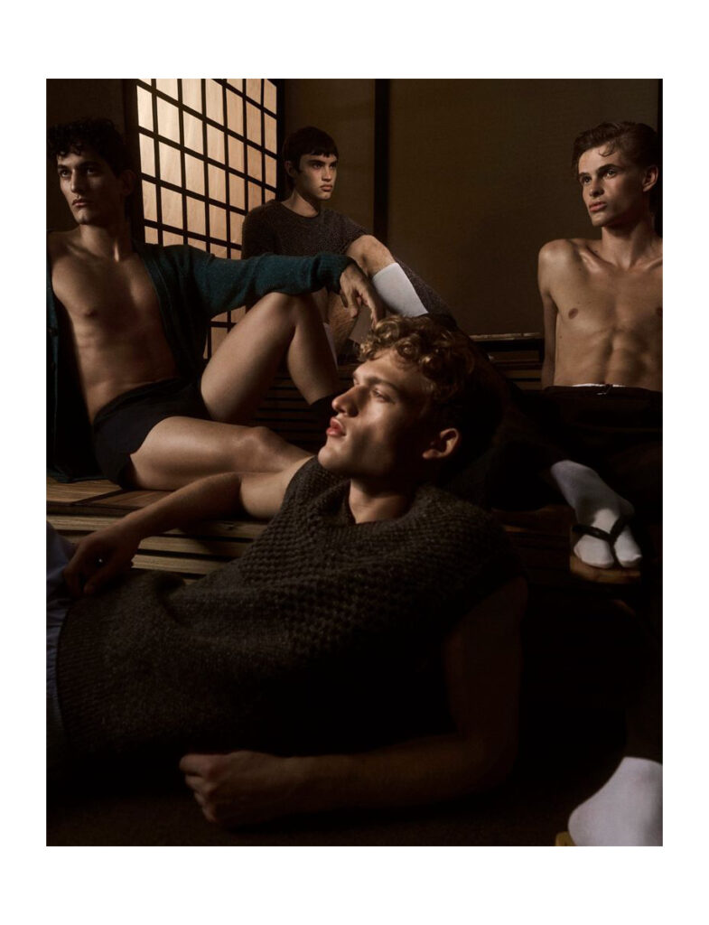 This gang hang featuring models Thijs Leushuis, Daniel Oanta, Antonio Guitto, Ruben Pols, Viktor Futumaichuk, and Nick Reid are in “Tendencias de invierno.”