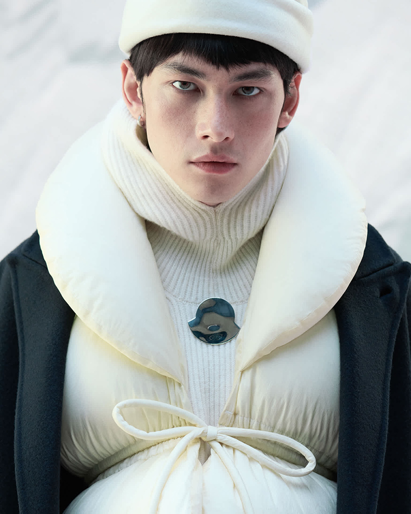 Moncler x Jil Sander Fall/Winter 2025 sculptural puffer coat campaign shot