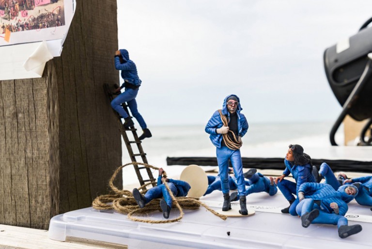 “Ignacio Ondategui fronts Moncler’s Gulliver’s Travels Spring/Summer 2016 campaign, photographed by Annie Leibovitz. The campaign also features Lilliputians wearing the electric blue Longue Saison jacket.” – FY Magazine.es