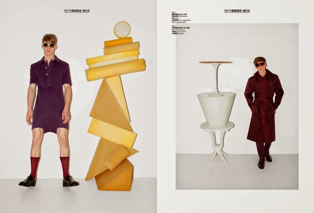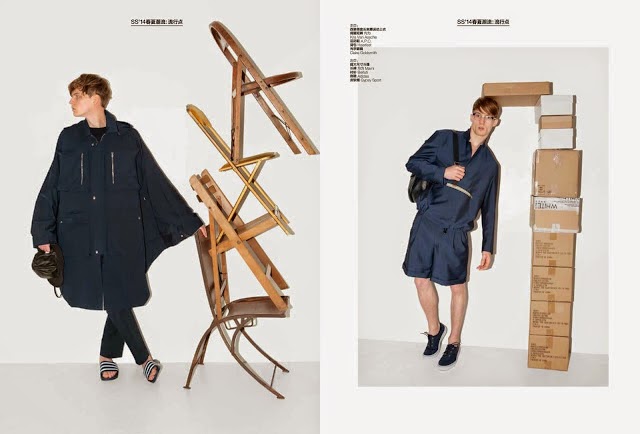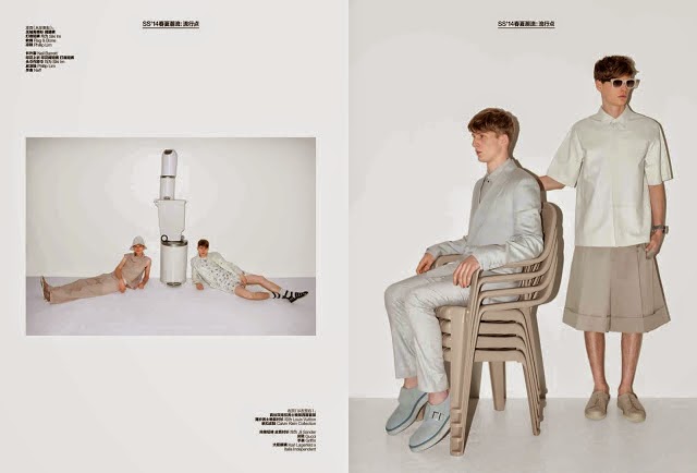 Brazilian photographer Marcelo Krasilcic snaps John Hein and Michael Lange in monochromatic looks for GQ Style China’s Spring/Summer 2014 issue. Stylist Haidee Findlay Levin outfits the duo in fluid designs including elongated shirts from Raf Simons to roomy trenches from Berluti.